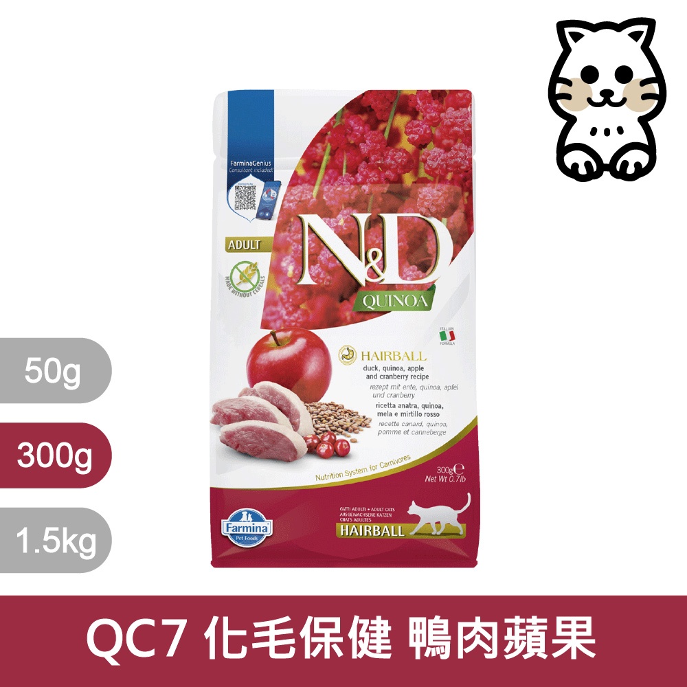 法米納 Farmina【ND藜麥無穀機能系列】貓糧 貓飼料 貓乾糧【QC7 貓用化毛保健 鴨肉蘋果 300克 300g】貓用化毛保健 鴨肉蘋果300GCat FoodPETZOO法米納寵物食品旗艦店