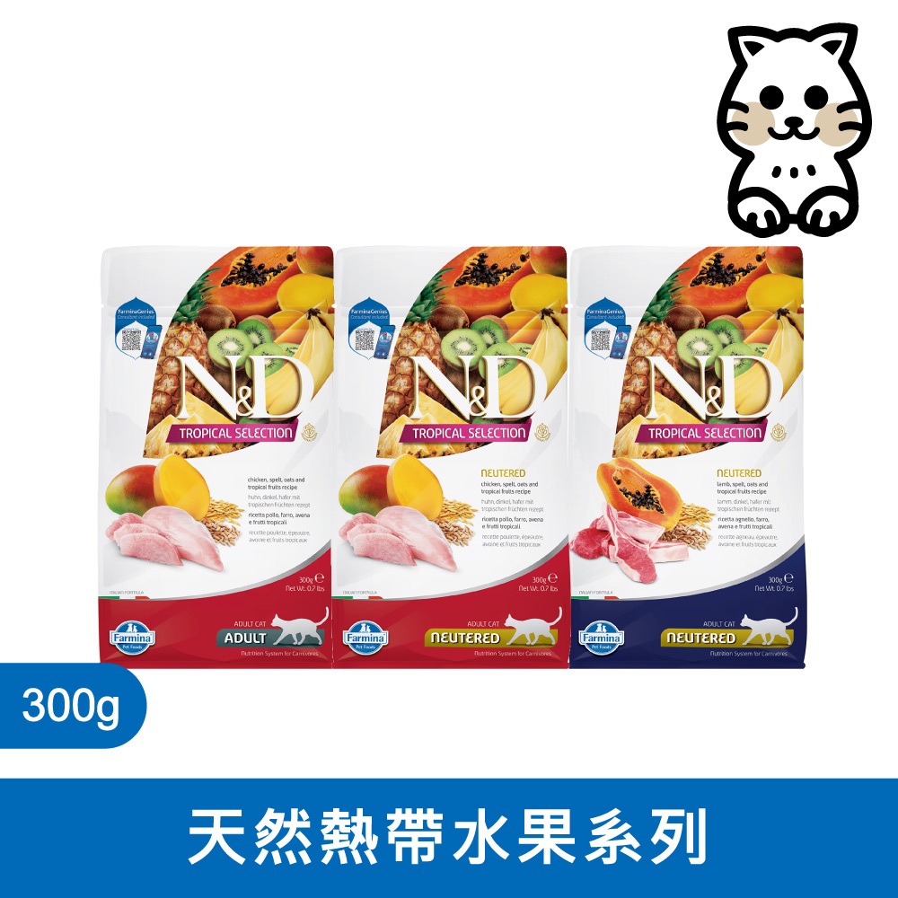 法米納 Farmina【ND天然熱帶水果系列】貓糧 貓飼料 貓乾糧【FTC 成貓 300g 300克】FTC1 全齡貓 雞肉芒果|FTC2 室內/結紮貓 雞肉芒果|FTC3 室內/結紮貓 羊肉木瓜Cat FoodPETZOO法米納寵物食品旗艦店
