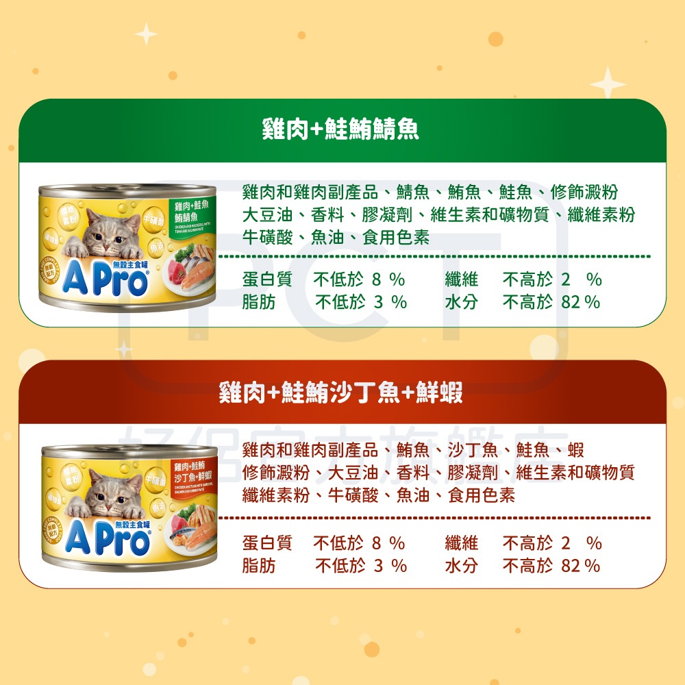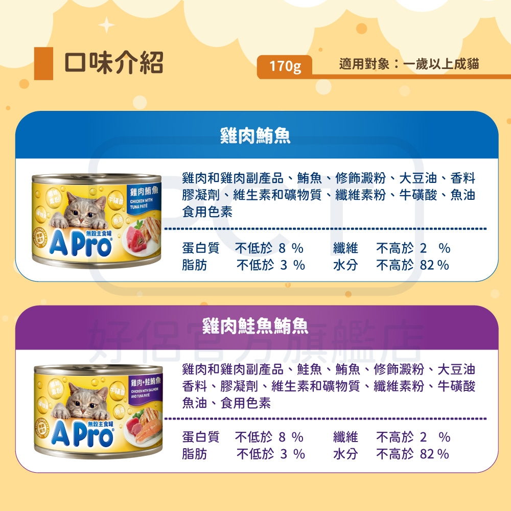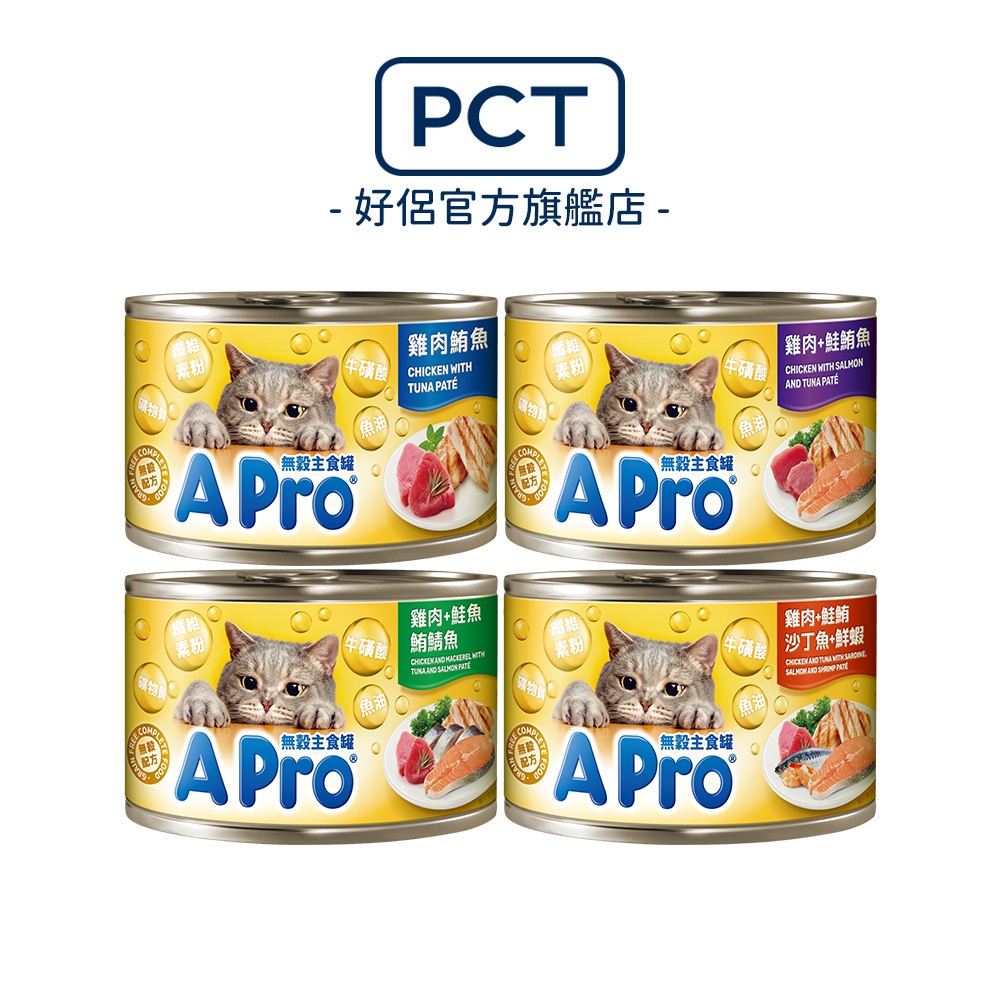 APro 愛卜無穀貓咪主食罐系列 170G(單罐)雞肉鮪魚-170G(單罐)|雞肉鮭魚鮪魚-170G(單罐)|雞肉+鮭鮪鯖魚-170G(單罐)|雞肉+鮭鮪沙丁魚+鮮蝦-170G(單罐)Cat FoodPCT好侶官方旗艦店