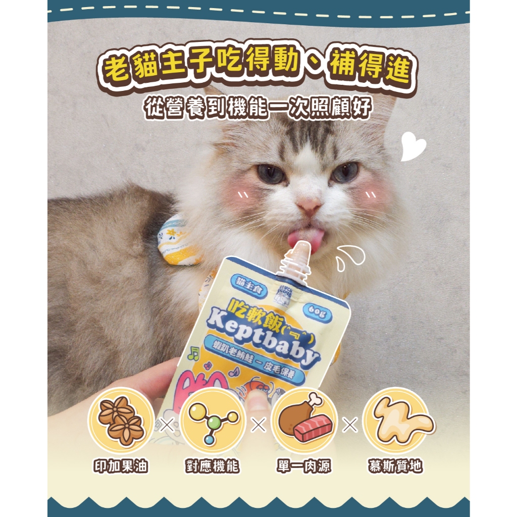 【沙發馬鈴薯】貓 Keptbaby吃軟飯-熟齡貓款 單包60g 骨肉泥主食餐包 貓主食餐包 貓主食 肉泥 肉絲餐包【貓】穩腎鮪鱸翁 60g|【貓】魷雞不卡關 60g|【貓】大滋補雞羊 60g|【湯匙】懶貓EAT匙靈(單支)|【貓】蝦趴老鮪鮭 60gCat Foodnu4PET陪心寵糧|沙發馬鈴薯|官方旗艦店