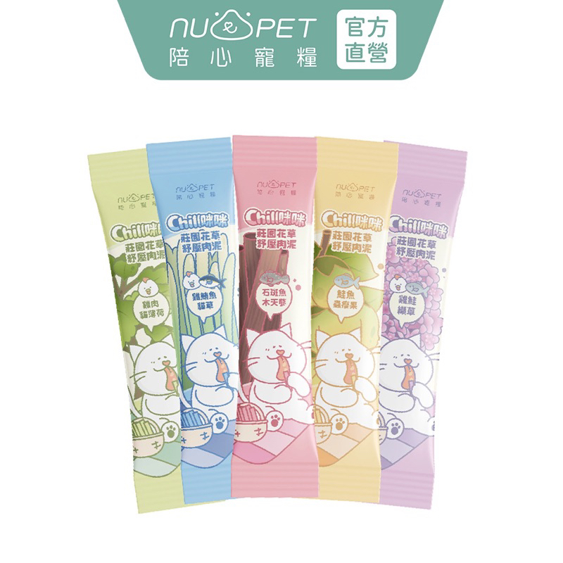 【nu4PET 陪心寵糧】貓用 Chill咪咪莊園花草紓壓肉泥 單條8g 寵物零食 貓狗零食 肉泥 貓條 貓薄荷雞鮭纈草8g|石斑魚木天蓼8g|鮭魚蟲癭果8g|雞肉貓薄荷8g|雞鮪魚貓草8gCat Treatsnu4PET陪心寵糧|沙發馬鈴薯|官方旗艦店