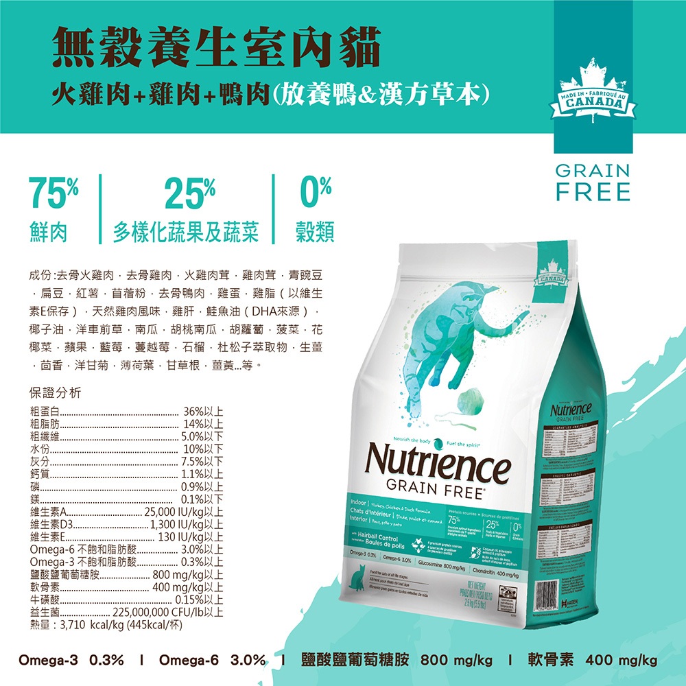 Nutrience 紐崔斯 無穀養生貓糧 全齡貓飼料 室內貓飼料 1.13kg 2.5kg 5kg 紐崔斯貓飼料 飼料室內貓-火雞肉+雞肉+鴨肉,5KG|全齡貓+六種魚配方,2.5KG|全齡貓+六種魚配方,5KG|全齡貓-火雞+雞肉+鯡魚配方,2.5KG|全齡貓-火雞+雞肉+鯡魚配方,5KG|室內貓-火雞肉+雞肉+鴨肉,1.13KG|室內貓-火雞肉+雞肉+鴨肉,2.5KG|全齡貓-火雞+雞肉+鯡魚配方,1.13KG|全齡貓+六種魚配方,1.13KGCat FoodPeta 寵小陪牠