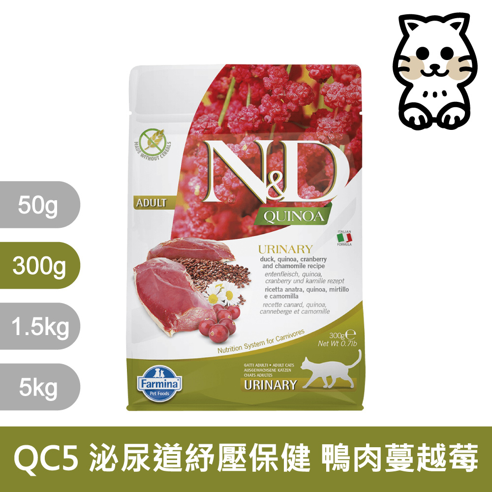 法米納 Farmina【ND藜麥無穀系列】貓飼料 貓糧 貓乾糧【QC5 泌尿道紓壓保健 鴨肉蔓越莓 300g 300克】QC5 貓用泌尿道紓壓保健 鴨肉蔓越莓Cat FoodPETZOO法米納寵物食品旗艦店