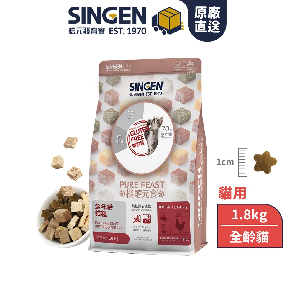 SINGEN 信元發育寶 貓用天然低敏無麩質凍乾飼料-1.8KG-添加牛肉 鴨肉 雞肉 貓乾糧 貓飼料 極醇元食SINGEN 信元發育寶 貓用天然低敏無麩質凍乾飼料-1.8KG-添加牛肉 鴨肉 雞肉 貓乾糧 貓飼料 極醇元食Cat FoodSINGEN 信元發育寶 官方原廠旗鑑店 台灣製造生產直送