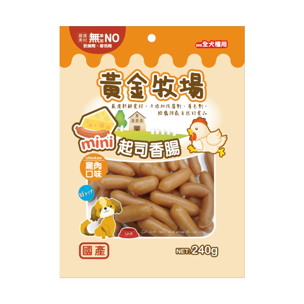 黃金牧場 起司香腸-雞肉/羊肉/牛肉(240g)│狗點心 狗零食 犬用 獎勵 零食 台灣製造 全齡犬雞肉|羊肉|牛肉Dog TreatsPeta 寵小陪牠