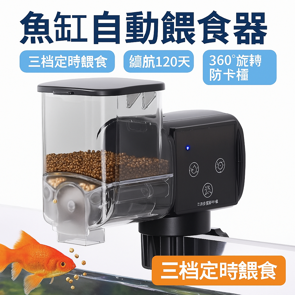 魚缸自動餵食器|三檔定時餵食×續航120天×360度旋轉防卡糧全自動投食機!魚缸自動餵食器|三檔定時餵食×續航120天×360度旋轉防卡糧全自動投食機!Aquarium NeedsT.K.胎王商城旗艦店