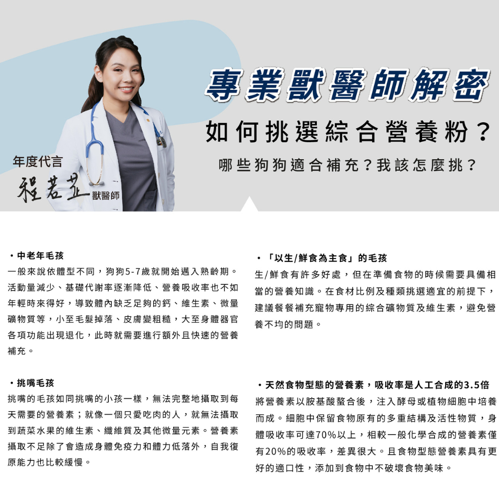 狗用綜合維他命 生鮮食必備 補鈣首選 預拌粉 營養補充 狗狗鈣粉 狗狗保健食品 狗狗營養品 寵立善 全年齡適用單入|體質強健(營養粉+魚油)Vitamins & SupplementsNatural10自然食 l 寵立善 官方直營