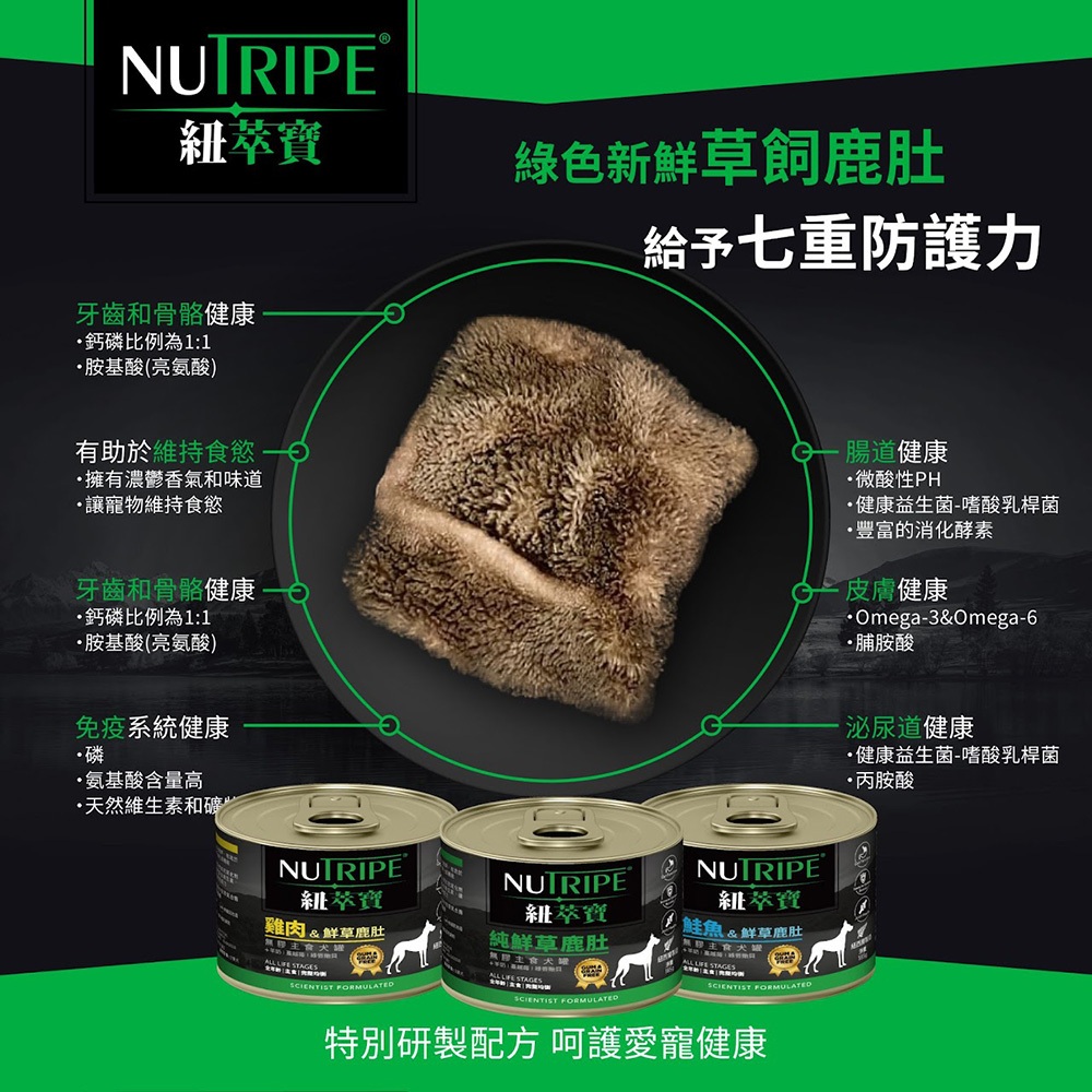NUTRIPE 紐萃寶 鮮草鹿肚 無膠主食狗罐 185g 狗狗罐頭 犬罐頭 寵物罐頭 狗主食罐 紐罐 犬主食罐 無膠罐頭純鮮草鹿肚,185g|牛肉&鮮草鹿肚,185g|羊肉&鮮草鹿肚,185g|雞肉&鮮草鹿肚,185g|鮭魚&鮮草鹿肚,185g|鰻魚&鮮草鹿肚,185gDog FoodPeta 寵小陪牠
