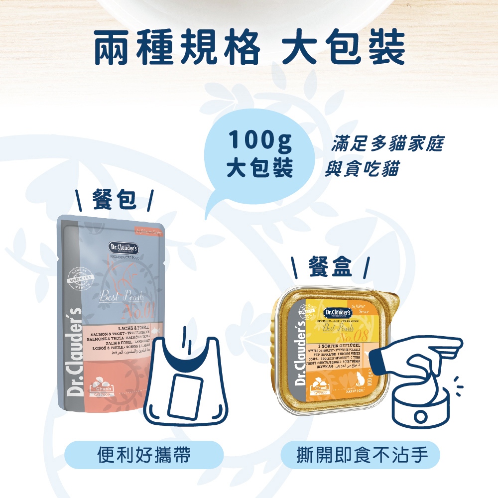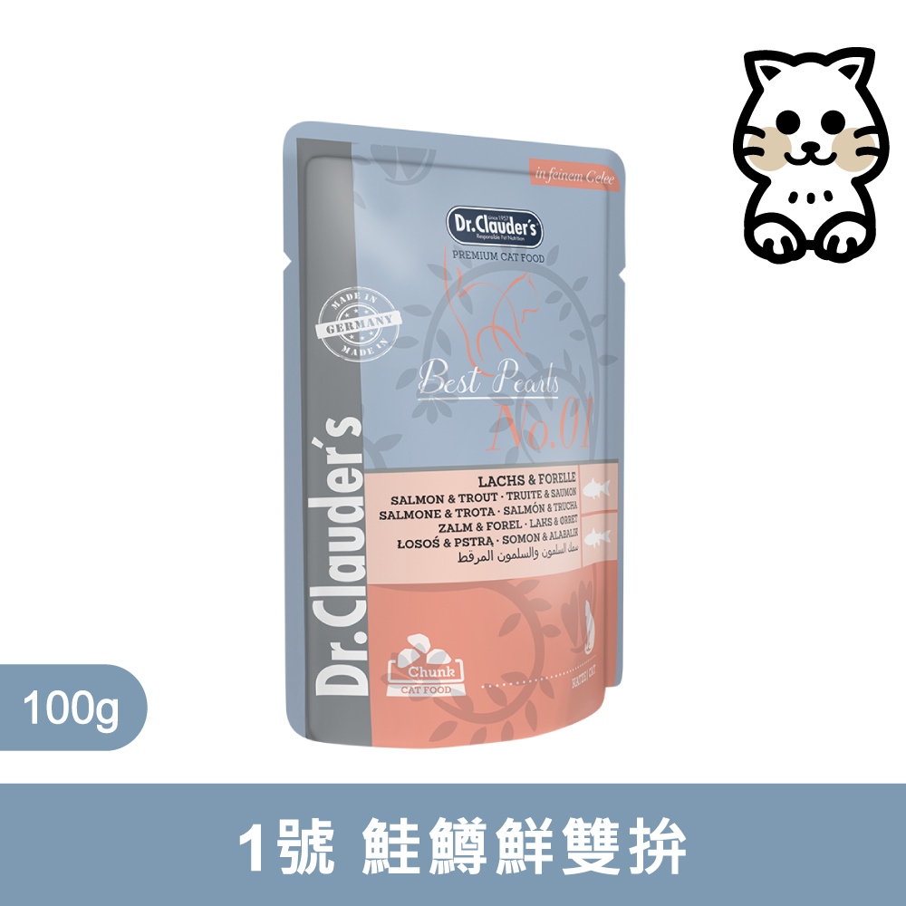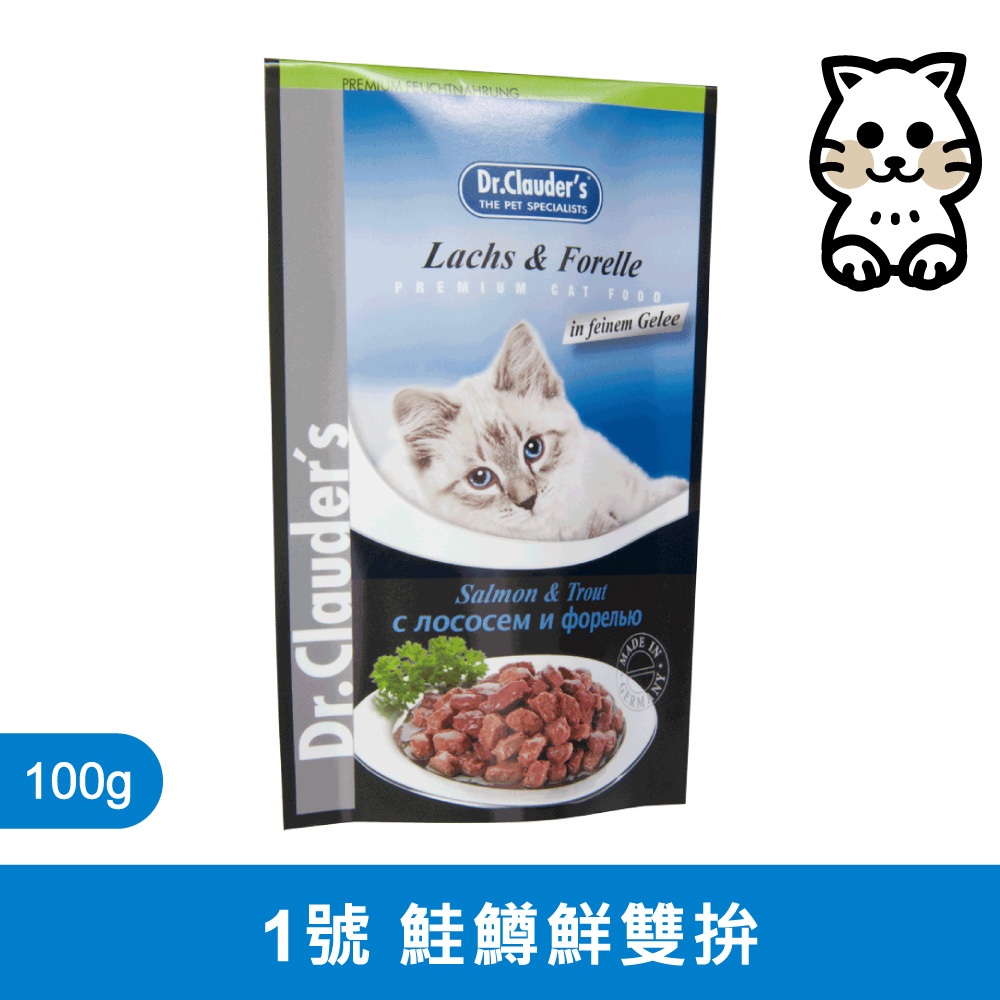 克勞德博士 Dr.clauder’s 珍珠系列 德國 原裝進口 無穀 無膠 補水 貓餐包 100G 兩款包裝,隨機出貨1號 鮭鱒鮮雙拼100gCat FoodPETZOO法米納寵物食品旗艦店