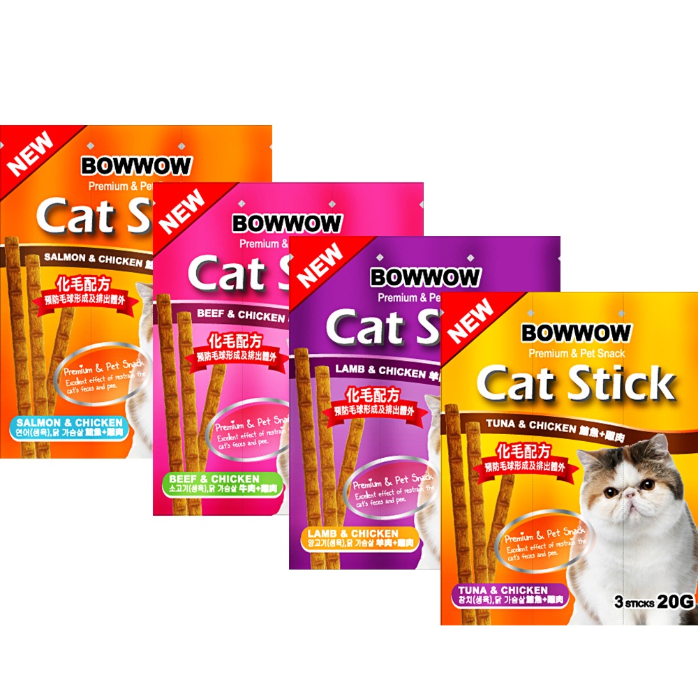 韓國BOWWOW 貓肉條 (3支/卡/20g) 美味貓肉條 化毛配方 貓點心 貓零食 寵物點心 寵物肉條 寵物零食 肉條鮭魚+雞肉|鮪魚+雞肉|牛肉+雞肉|羊肉+雞肉Cat TreatsPeta 寵小陪牠