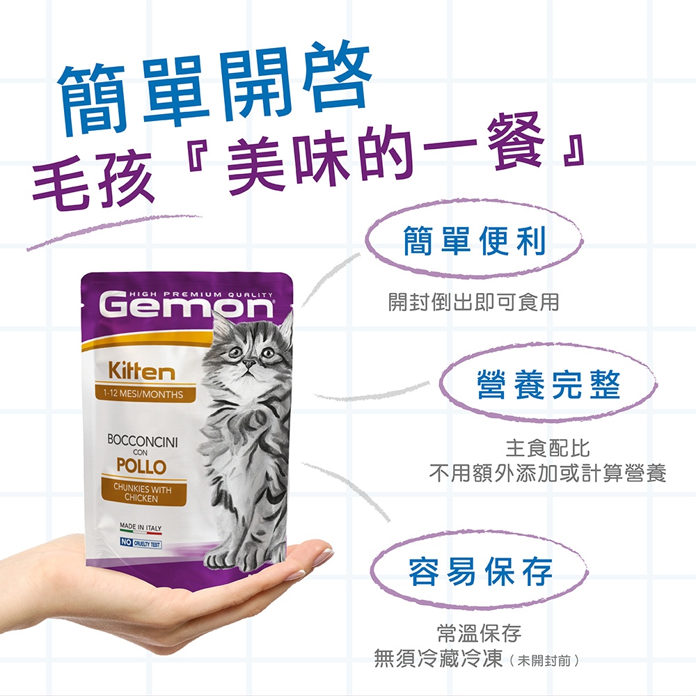 Gemon啟蒙 原廠直送 義大利啟蒙貓用無穀主食餐包 100g 無穀主食貓餐包 貓主食罐 主食餐包 貓罐頭 貓餐包 餐包成貓(牛肉+蔬菜)|成貓(兔肉+蔬菜)|高齡貓(火雞肉)|幼母貓(雞肉)|室內貓(鮪魚+鯛魚)Cat FoodPeta 寵小陪牠