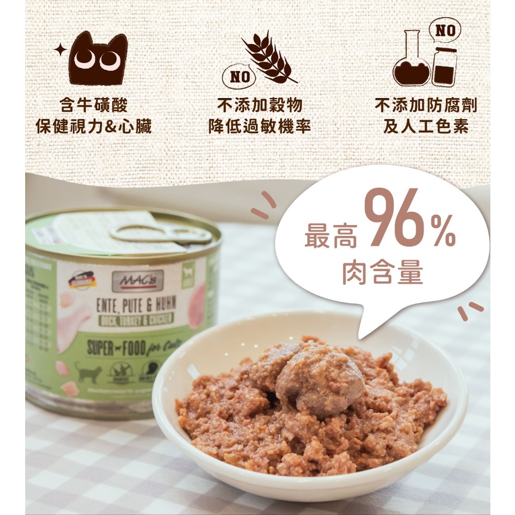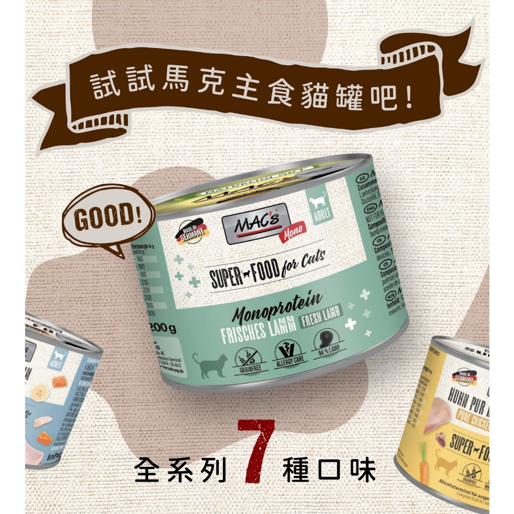 德國馬克Mac’s 德國馬克無穀主食貓罐(200g)│主食罐 馬克 德罐 無穀主食罐 貓主食罐 貓罐羊肉|火雞肉+火雞心|羊肉+火雞肉|鴨肉+火雞肉+雞肉|雞肉+雞心|鮭魚+雞肉|幼貓-火雞肉+兔肉Cat FoodPeta 寵小陪牠