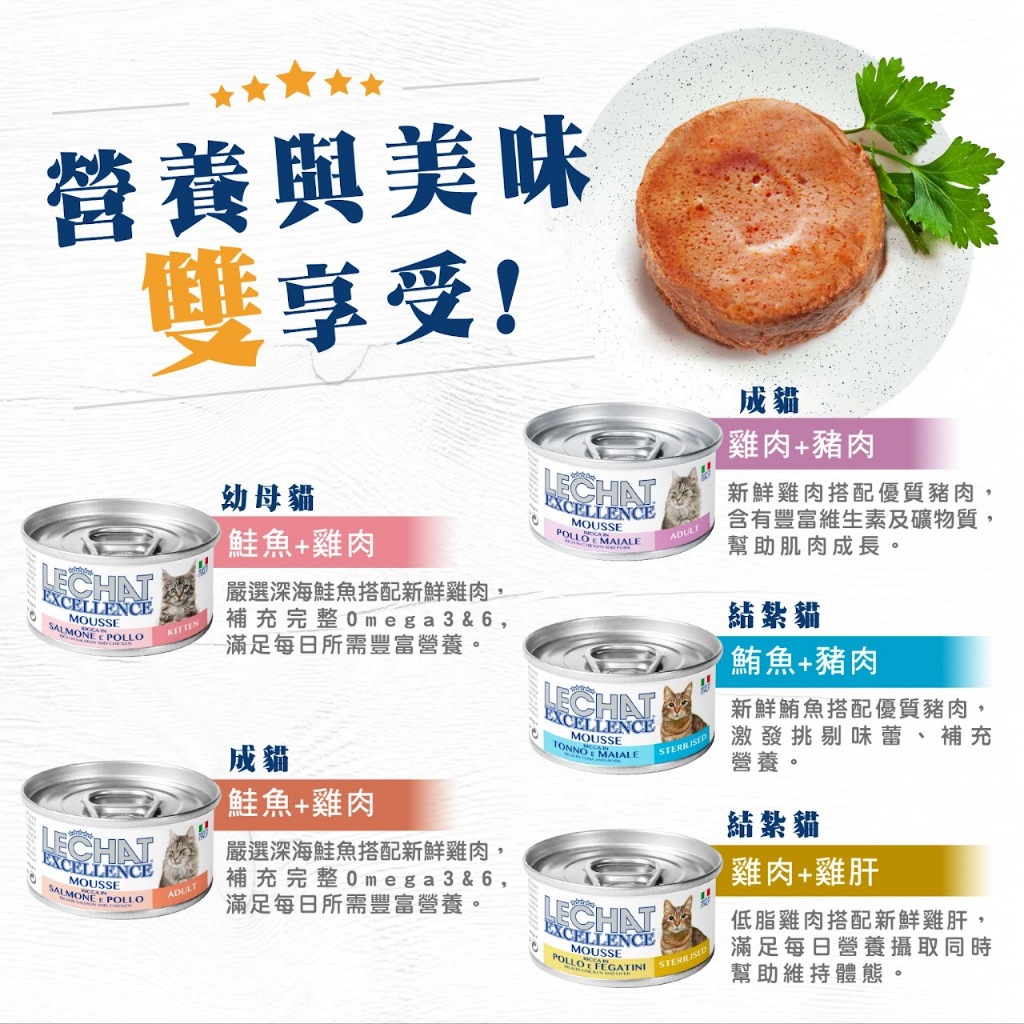 義大利LE卓越 原廠直送-無榖貓主食罐 85g 貓罐 主食貓罐 幼貓罐頭 成貓罐頭 結紮貓罐頭 貓咪罐頭 無穀主食罐鮭魚+雞肉(幼母貓)|鮭魚+雞肉(成貓)|雞肉+豬肉(成貓)|鮪魚+豬肉(結紮貓)|雞肉+雞肝(結紮貓)Cat FoodPeta 寵小陪牠