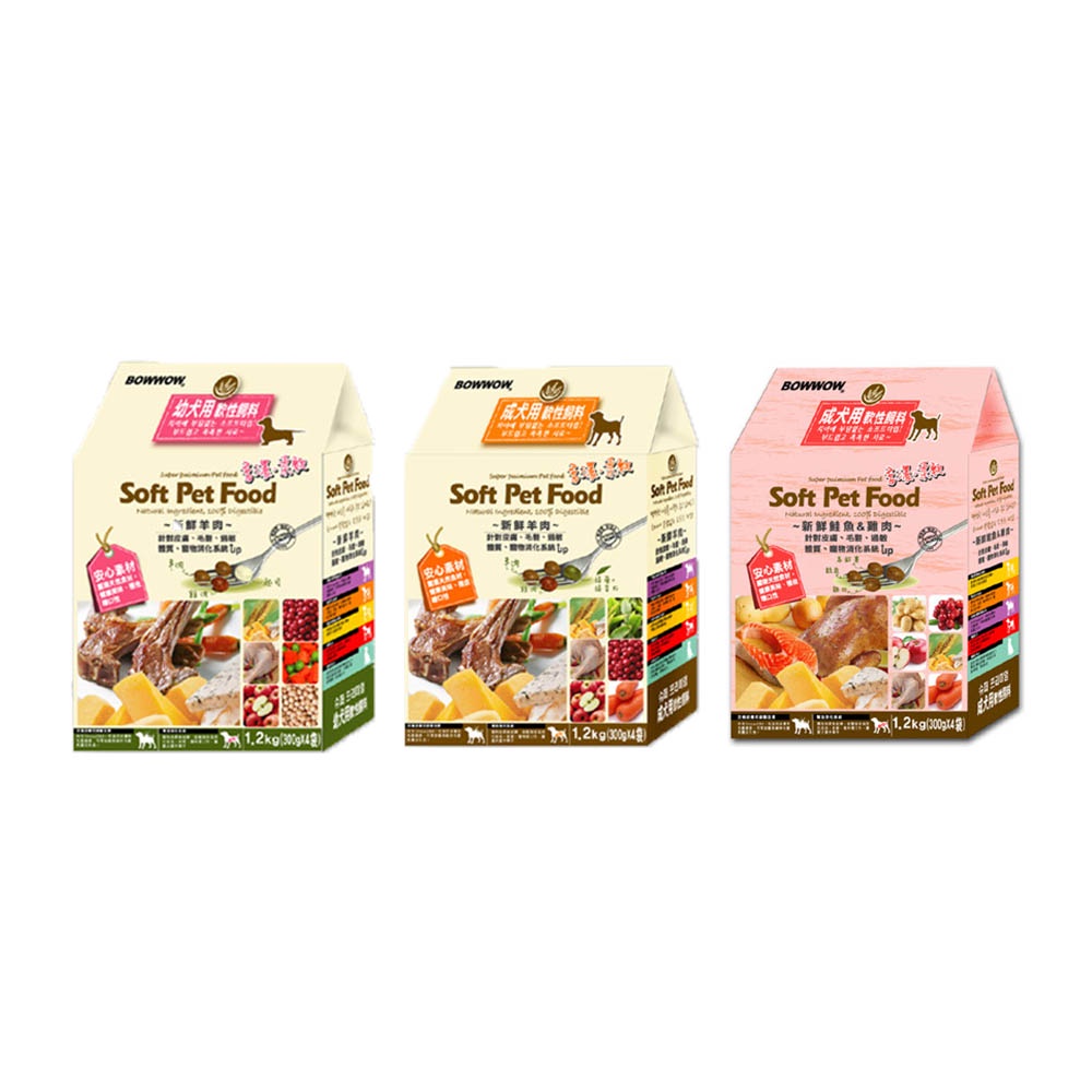 BOWWOW 原廠直送-犬用軟飼料 1.2kg 3kg 幼母犬用軟性飼料 成犬軟飼料 軟飼料 狗飼料 犬糧 狗糧 犬飼料新鮮羊肉-幼犬,1.2KG 送犬用餐包x1包|新鮮羊肉-幼犬,3KG 送犬用餐包x1包|新鮮羊肉-成犬,1.2KG 送犬用餐包x1包|新鮮羊肉-成犬,3KG 送犬用餐包x1包|新鮮鮭魚+雞肉-成犬,1.2KG 送犬用餐包x1包|新鮮鮭魚+雞肉-成犬,3KG 送犬用餐包x1包Dog FoodPeta 寵小陪牠