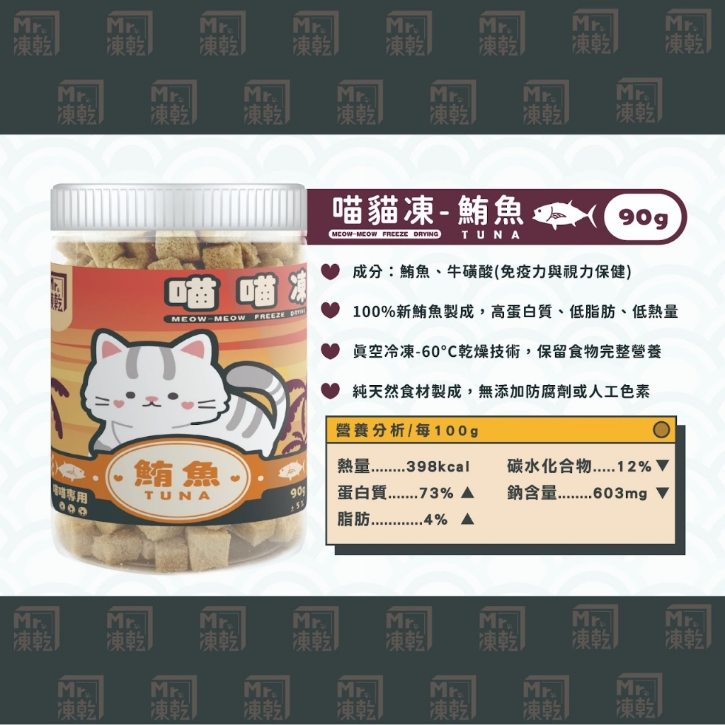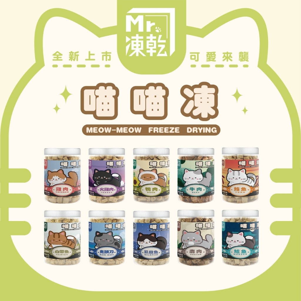現貨秒出 Mr.凍乾 喵喵凍 喵貓凍 天然原肉凍乾 新鮮食材製成 寵物凍乾 貓凍乾 凍乾零食 貓咪零食 凍乾貓 貓咪點心雞肉100g|火雞肉100g|鴨肉100g|牛肉100g|鮪魚90g|白帶魚80g|鬼頭刀90g|虱目魚120g|鹿肉100g|鱸魚100gCat TreatsPeta 寵小陪牠