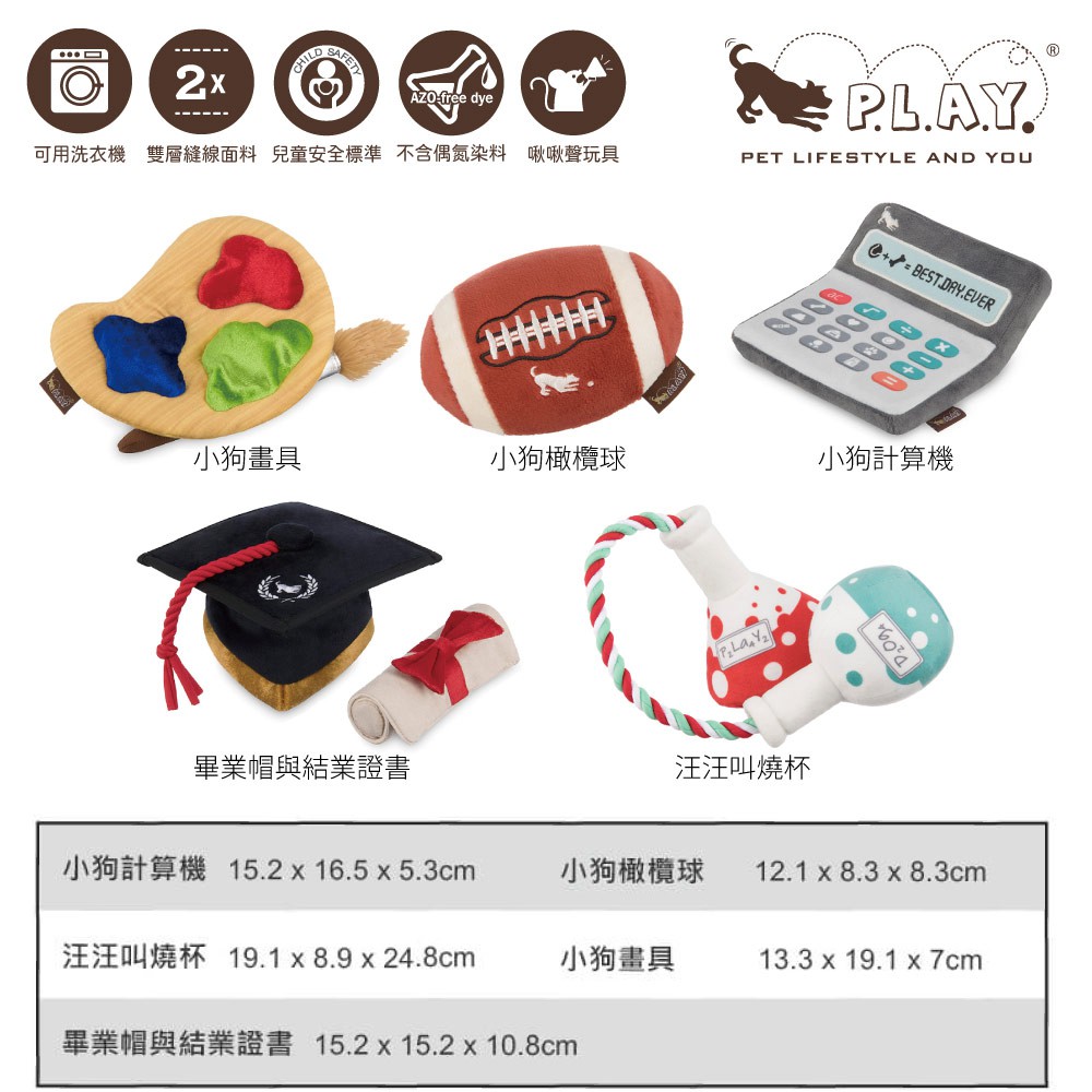 【美國P.L.A.Y.】開學季寵物發聲絨毛玩具|狗玩具貓玩具啃咬潔牙紓壓玩具-5款小狗計算機|小狗橄欖球|汪汪叫燒杯|畢業帽與結業證書|小狗畫具ToysP.L.A.Y.頑寵生活館