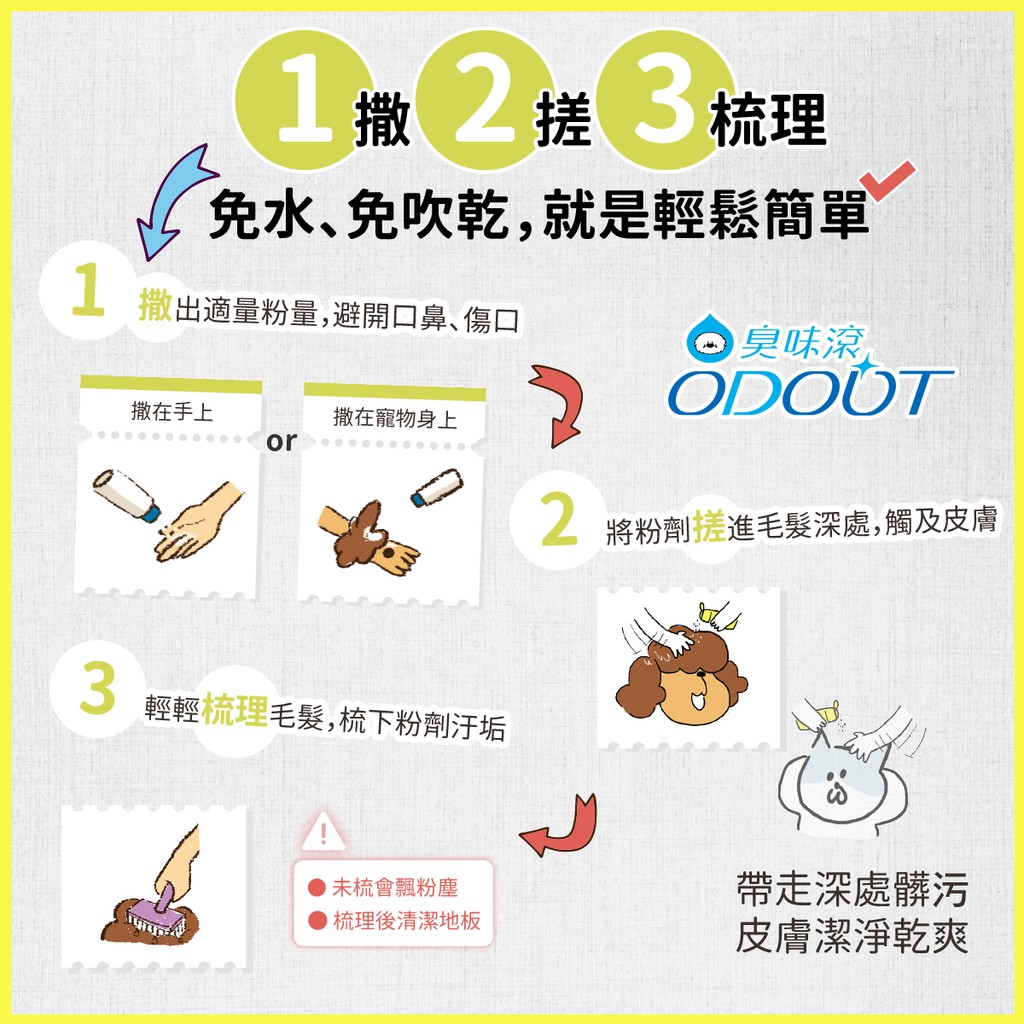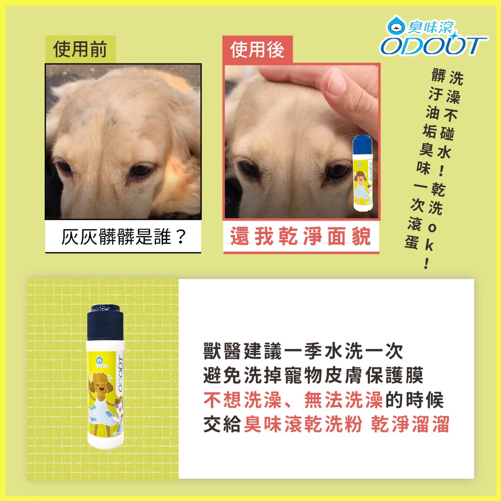 【臭味滾】寵物專用無香除臭乾洗粉 100g/貓狗適用乾洗粉100gHair CareODOUT臭味滾官方旗艦店