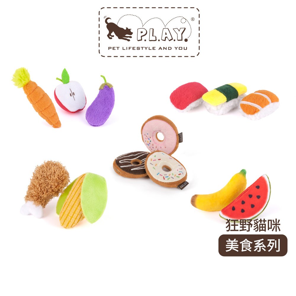 【美國P.L.A.Y.】狂野貓咪美食系列貓草絨毛玩具|貓草抱枕貓咪玩具貓草玩具寵物絨毛玩具紓壓玩具抗憂鬱玩具糖果紙5款野餐派對|野蠻壽司|熱帶水果|田園農趣|巧克力甜甜圈ToysP.L.A.Y.頑寵生活館