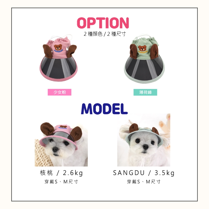 【ParisDog】可愛小熊狗狗遮陽帽 寵物服飾少女粉,L-XL|薄荷綠,S-M|薄荷綠,L-XL|少女粉,S-MHatsParis dog | 韓國寵物時尚精品旗艦店