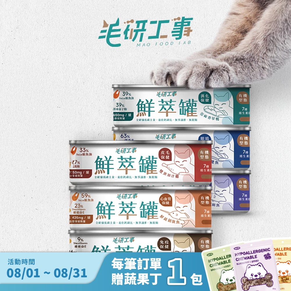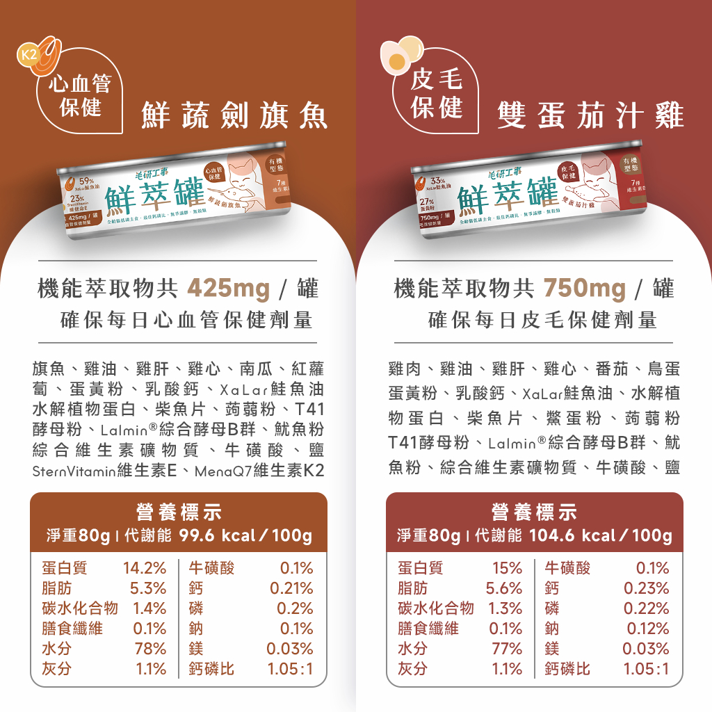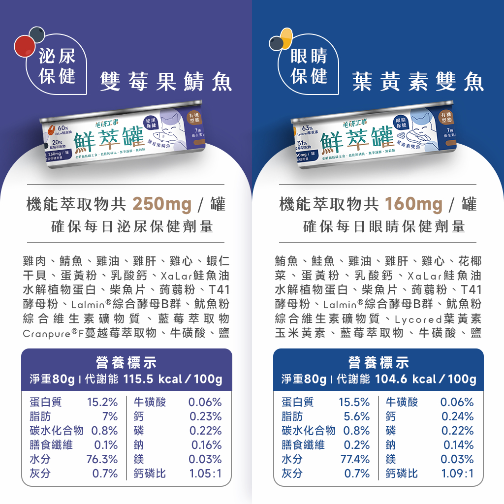 【毛研工事-貓主食罐】 鮮萃貓肉泥主食罐 80g 貓咪 無穀 低磷 貓罐罐 貓咪罐頭 機能貓罐頭 Petwoof嚴選💙葉黃素雙魚(眼睛保健)|❤️雙蛋茄汁雞(皮毛保健)|🤎褐藻雞鵪鶉(免疫保健)|💜雙莓果鯖魚(泌尿保健)|💚亞麻香草鴨(消化保健)|🧡鮮蔬劍旗魚(心血管保健)Cat FoodPetwoof 陪我寵物