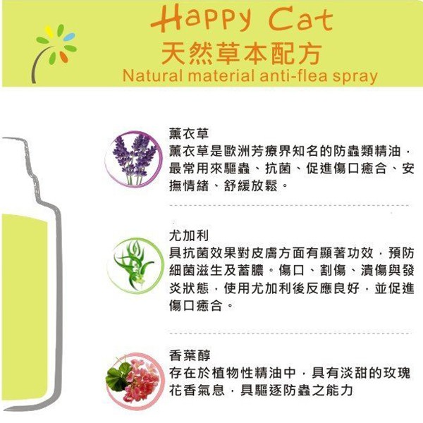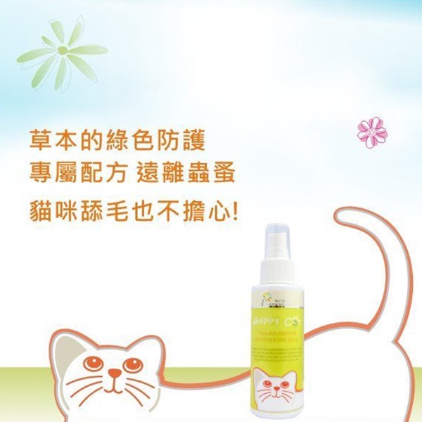 Happy Cat-純天然防蚤驅蟲噴劑-貓咪專用 120ML SGS檢驗 不含化學藥劑 有效期2027.12.26Happy Cat-純天然防蚤驅蟲噴劑-貓咪專用 120ML SGS檢驗 不含化學藥劑 有效期2027.12.26Anti Fleas & TicksPETRICK派翠克寵物用品