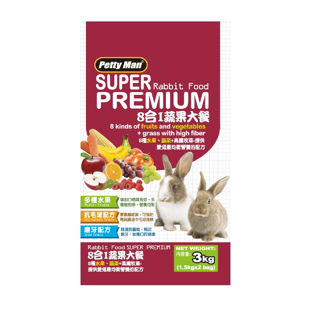 PettyMan PTM愛兔綜合營養主食 八合一蔬果大餐 高纖牧草 迷你兔 幼兔 成兔 全方位營養主食 鼠主食 牧草愛兔綜合營養主食3kg|八合一蔬果大餐+高纖牧草3Kg|迷你兔營養主食2.4kg|幼兔全方位營養主食1000g|成兔全方位營養主食1000g|寵物鼠全方位營養主食1000gSmall Pet FoodPeta 寵小陪牠