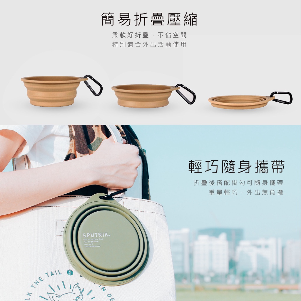 SPUTNIK︱寵物摺疊碗 (食品及安全矽膠/寵物碗/水碗/外出摺疊碗)粉色|藍色|灰色|黑色|卡其色|綠色Bowls & FeedersSPUTNIK斯普尼克官方直營店