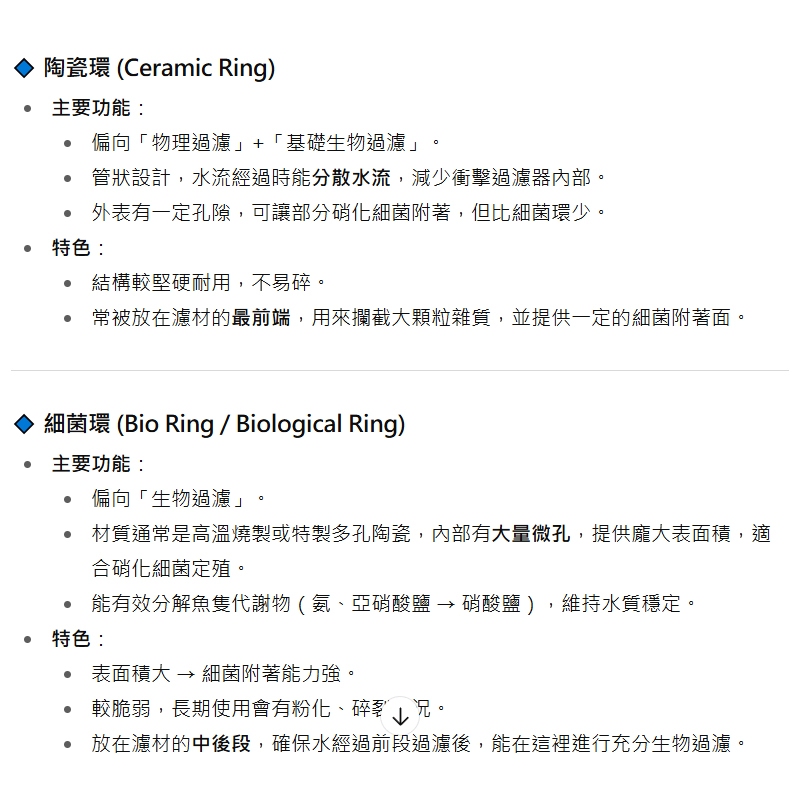 白呼吸環 培菌環 細菌環 細菌屋 水族用品白細菌環一個|陶瓷環一個Aquarium NeedsT.K.胎王商城旗艦店
