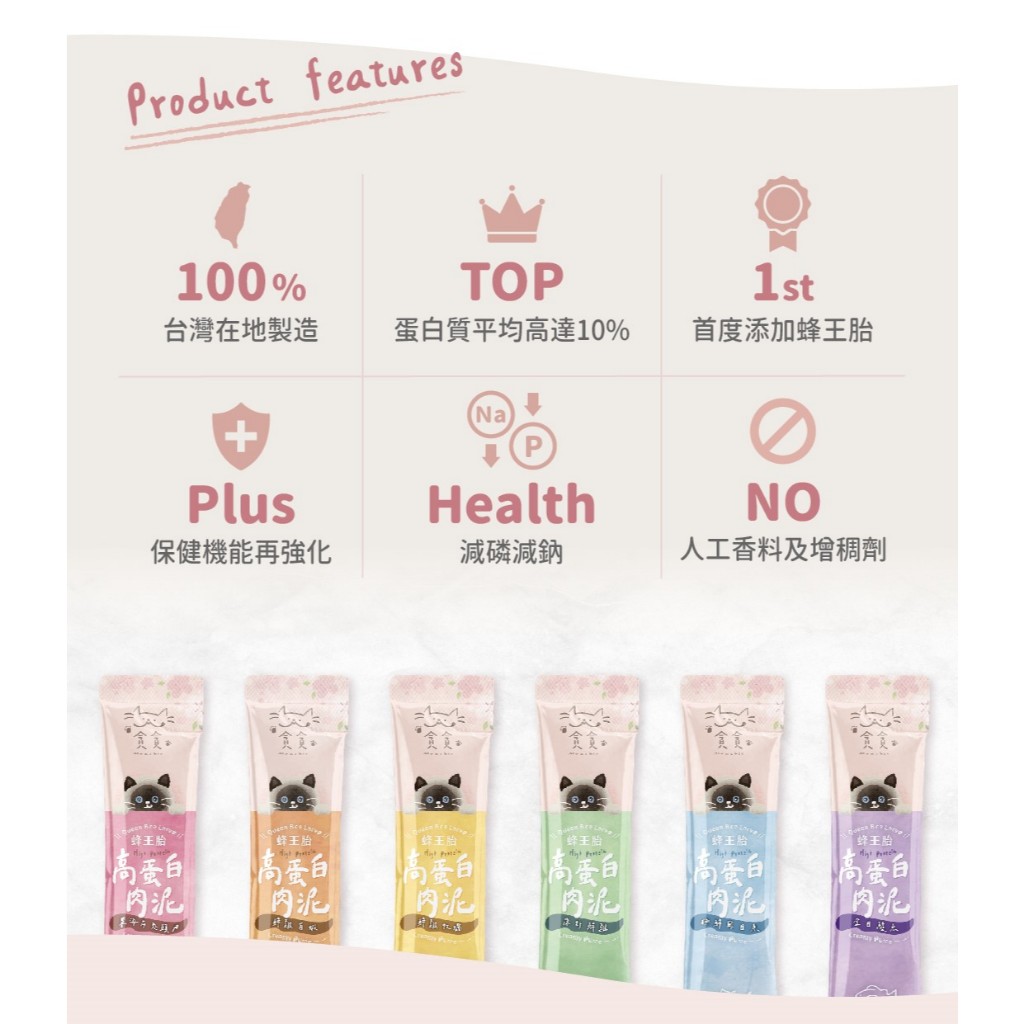 【Munchee 貪貪】蜂王胎高蛋白肉泥條 貓零食 貓肉泥 貓點心 台製肉泥 4入包 保健 營養 好吃 補水原野鮮雞(13g*4入/包)|鮮雞牡蠣(13g*4入/包)|東海岸鬼頭刀(13g*4入/包)|極鮮虱目魚(13g*4入/包)|金目鱸魚(13g*4入/包)|鮮雞白蝦(13g*4入/包)Cat TreatsMunchee 貪貪生態貓食|官方旗艦店