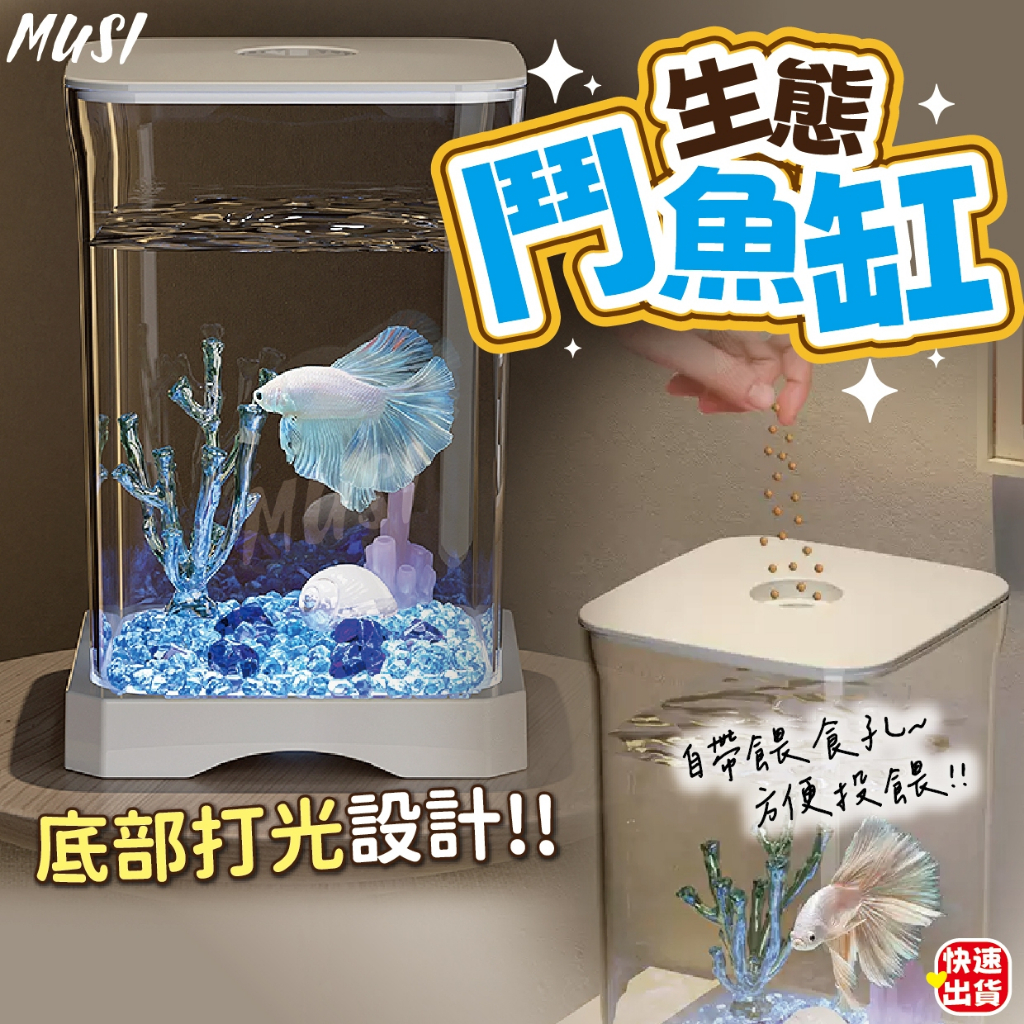 [自帶餵食孔 餵食不翻蓋]鬥魚魚缸 鬥魚缸 小魚缸 底部打光設計 高清透亮隨時賞魚 迷你魚缸 生態魚缸生態鬥魚缸-基礎無燈 (純缸 無生態)|生態鬥魚缸-升級(缸+燈 無生態)|生態鬥魚缸-豪華(缸+燈+珊瑚+碧綠珠)Aquarium NeedsMUSI 口罩&包包帽子 專賣