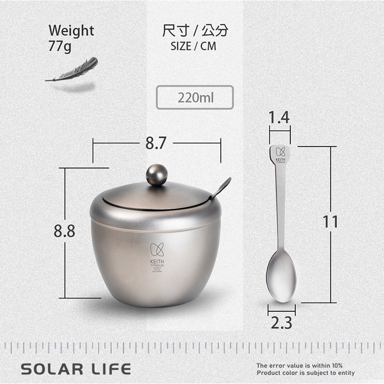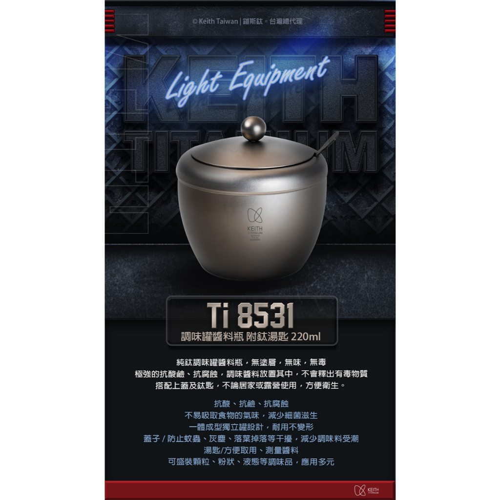 Keith 鎧斯純鈦調味罐醬料瓶 附鈦湯匙 220ml / Ti8531 帶勺調味盒 密封調料罐 鹽巴盒 調味品罐Keith 鎧斯純鈦調味罐醬料瓶 附鈦湯匙 220ml / Ti8531 帶勺調味盒 密封調料罐 鹽巴盒 調味品罐Camping & HikingSolar Life 索樂生活 | Keith鎧斯鈦台灣總代理