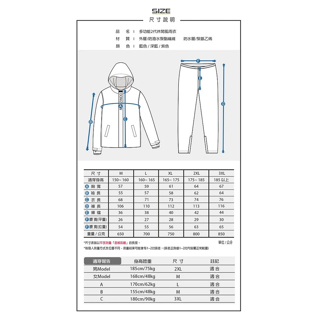 全新7-2多功能2代背包雨衣(二件式) 專利側開延展機車雨衣深藍色M|深藍色L|深藍色XL|深藍色2XL|深藍色3XL|水藍色M|水藍色L|水藍色XL|水藍色2XL|水藍色3XL|紫色M|紫色L|紫色XL|紫色2XL|紫色3XL|深藍色7XL(100KG以上)Rain CoatsOUTRANGE 戶外生活