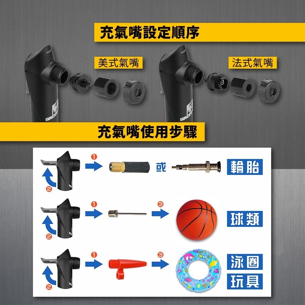打氣筒 籃球打氣筒 便攜式打氣筒 附球針組 美/法式氣嘴 80-PSI 台灣製造打氣筒【附球針組】|球針組CyclingSKORPION蠍牌 官方旗艦店