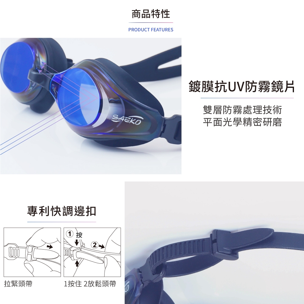 【SAEKO】原創系列 舒適眼罩防霧快調鍍膜泳鏡 S77UV黑藍|黑銀|藍|黑桃Swimming & DivingSAEKO泳鏡商城