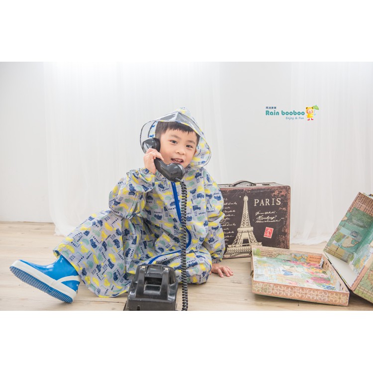 Rainbooboo雨滴寶寶 灰底汽車無毒兒童風雨衣-安全檢驗合格90-105CM|105-120CM|120-135CM|135-150CM|150-165CMRain Coatsrainbooboo雨滴寶寶-雨具專賣