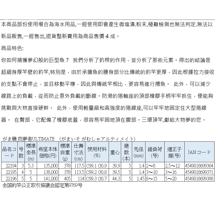 【GAMAKATSU】22 我夢者ULTIMATE 磯釣竿 (公司貨)5號 5m|3號 5.3m|4號 5mFishingraven3c