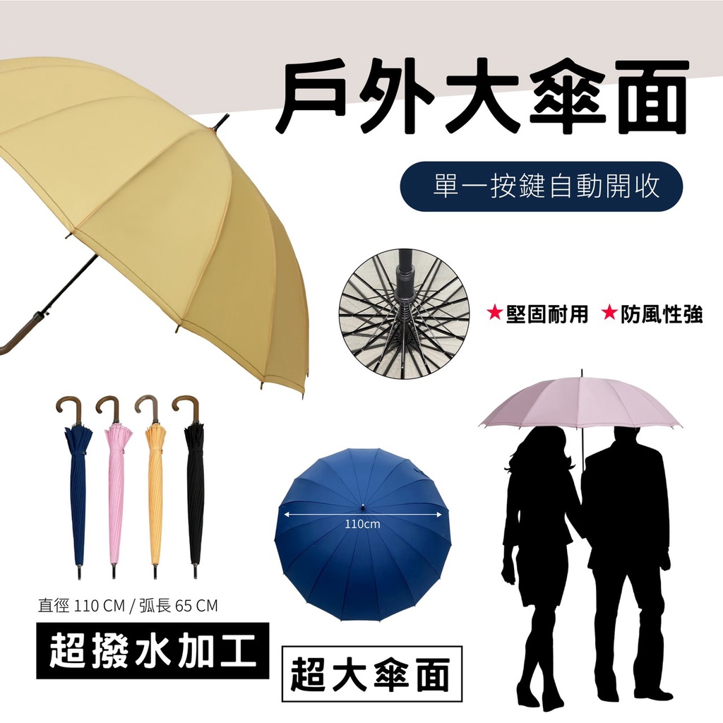 日式16根骨超大傘面|簡約素面自動傘|一鍵即開設計|2人大傘面|超級撥水 雨傘奶茶色|黑色|桃紅色|淡藍色|鵝黃色|綠色|灰色|粉色|胭脂紅UmbrellasProlla 保羅拉精緻雨傘