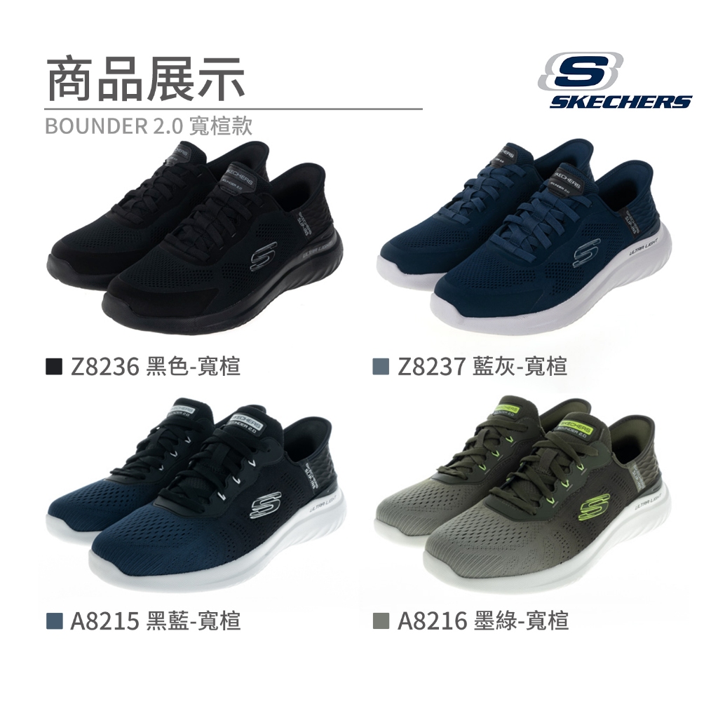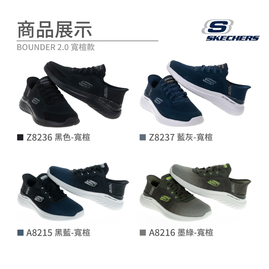 Skechers運動鞋 男鞋 BOUNDER 2.0 寬楦 瞬穿科技 免綁鞋帶慢跑鞋 套入跑步鞋 懶人鞋 Z8236🆕A8215黑藍-寬楦,US7號(25cm)|🆕A8215黑藍-寬楦,US7.5號(25.5cm)|🆕A8215黑藍-寬楦,US8號(26cm)|🆕A8215黑藍-寬楦,US8.5號(26.5cm)|🆕A8215黑藍-寬楦,US9號(27cm)|Z8236黑色-寬楦,US7號(25cm)|Z8236黑色-寬楦,US7.5號(25.5cm)|Z8236黑色-寬楦,US8號(26cm)|Z8236黑色-寬楦,US8.5號(26.5cm)|Z8236黑色-寬楦,US9號(27cm)|Z8236黑色-寬楦,US9.5號(27.5cm)|Z8236黑色-寬楦,US10號(28cm)|Z8236黑色-寬楦,US10.5號(28.5cm)|Z8237藍灰-寬楦,US7號(25cm)|Z8237藍灰-寬楦,US7.5號(25.5cm)|Z8237藍灰-寬楦,US8號(26cm)|Z8237藍灰-寬楦,US8.5號(26.5cm)|Z8237藍灰-寬楦,US9號(27cm)|Z8237藍灰-寬楦,US9.5號(27.5cm)|Z8237藍灰-寬楦,US10號(28cm)|Z8237藍灰-寬楦,US10.5號(28.5cm)|🆕A8215黑藍-寬楦,US9.5號(27.5cm)|🆕A8215黑藍-寬楦,US10號(28cm)|🆕A8215黑藍-寬楦,US10.5號(28.5cm)|🆕A8216墨綠-寬楦,US7號(25cm)|🆕A8216墨綠-寬楦,US7.5號(25.5cm)|🆕A8216墨綠-寬楦,US8號(26cm)|🆕A8216墨綠-寬楦,US8.5號(26.5cm)|🆕A8216墨綠-寬楦,US9號(27cm)|🆕A8216墨綠-寬楦,US9.5號(27.5cm)|🆕A8216墨綠-寬楦,US10號(28cm)|🆕A8216墨綠-寬楦,US10.5號(28.5cm)Running ShoesOSOME奧森鞋業