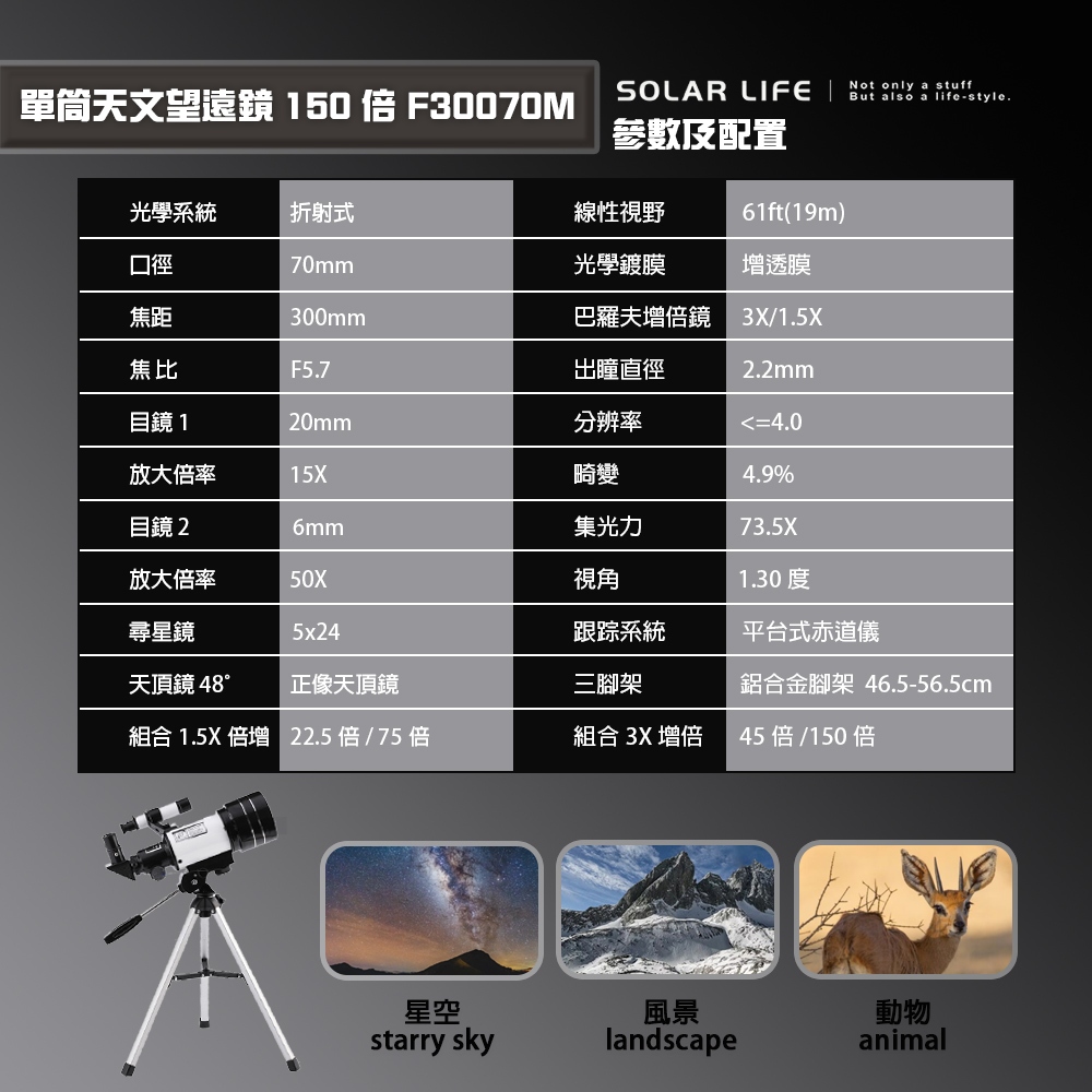 單筒天文望遠鏡150倍 F30070M 戶外觀星鏡 手機望遠鏡 高清望眼鏡 高倍觀鳥鏡 尋星鏡單筒天文望遠鏡150倍|Nikula 10倍 10X22雙筒望遠|Nikula 單筒變焦望遠鏡|復古海盜單筒望遠鏡Camping & HikingSolar Life 索樂生活 | Keith鎧斯鈦台灣總代理