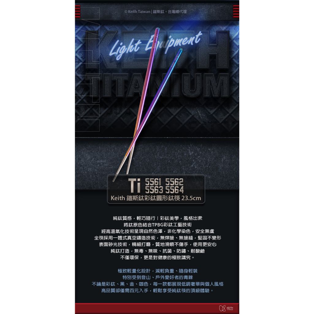 Keith 鎧斯鈦彩鈦圓形鈦筷 23.5cm / Ti5661 Ti5662 Ti5663 Ti5664 彩鈦筷子 純鈦Ti5661 (幻彩)|Ti5662 (黑)|Ti5663 (金)|Ti5664 (咖啡)Camping & HikingSolar Life 索樂生活 | Keith鎧斯鈦台灣總代理