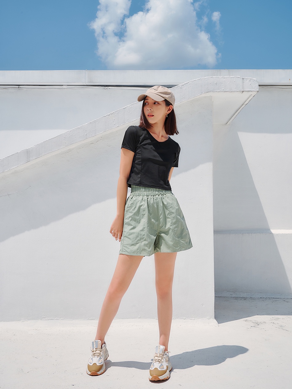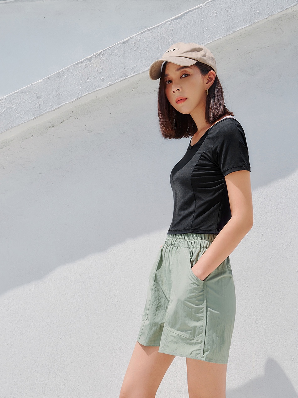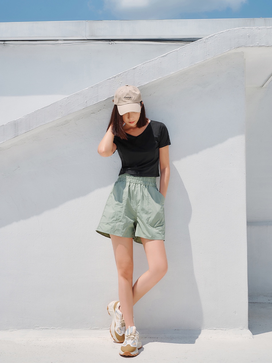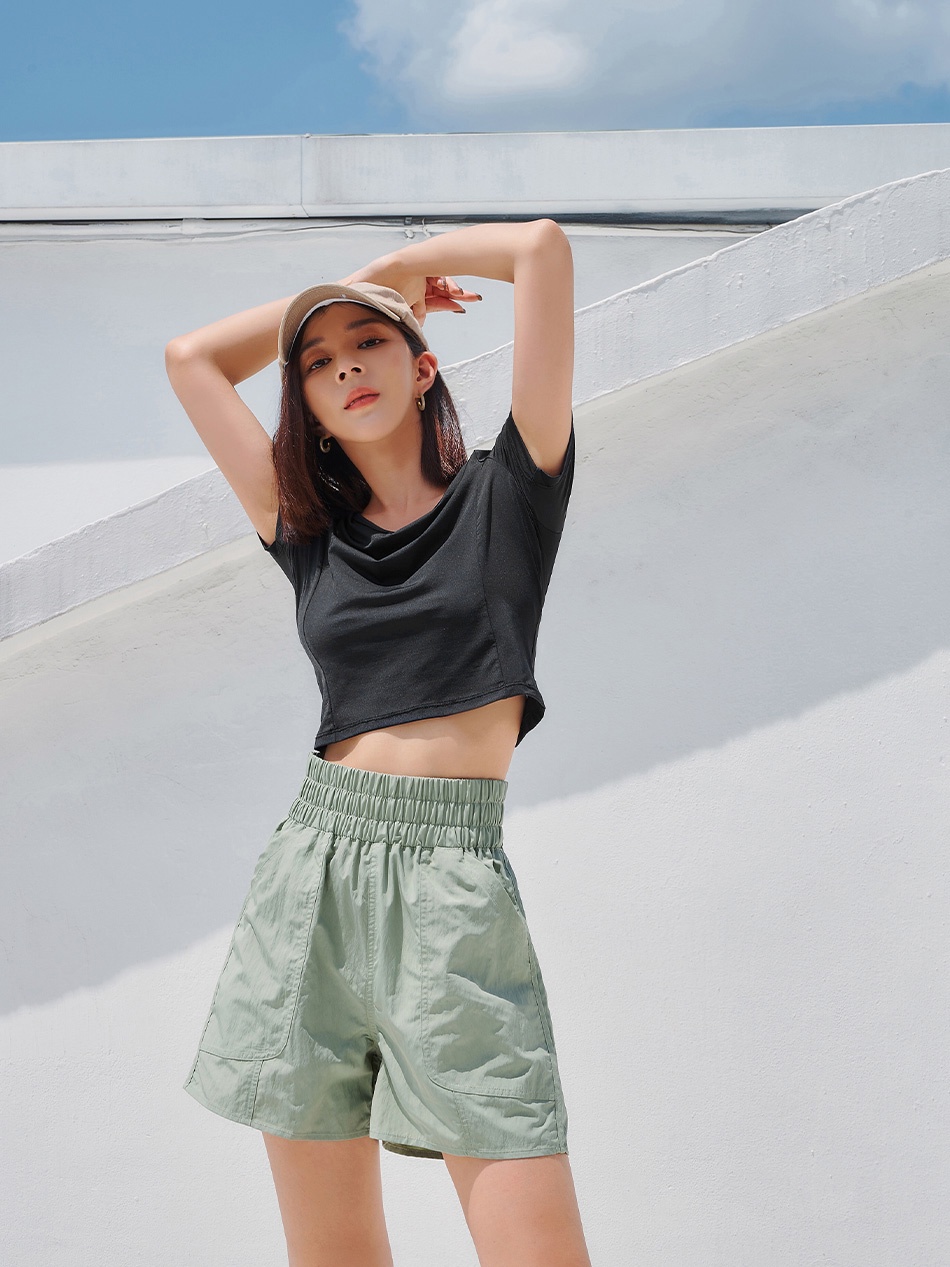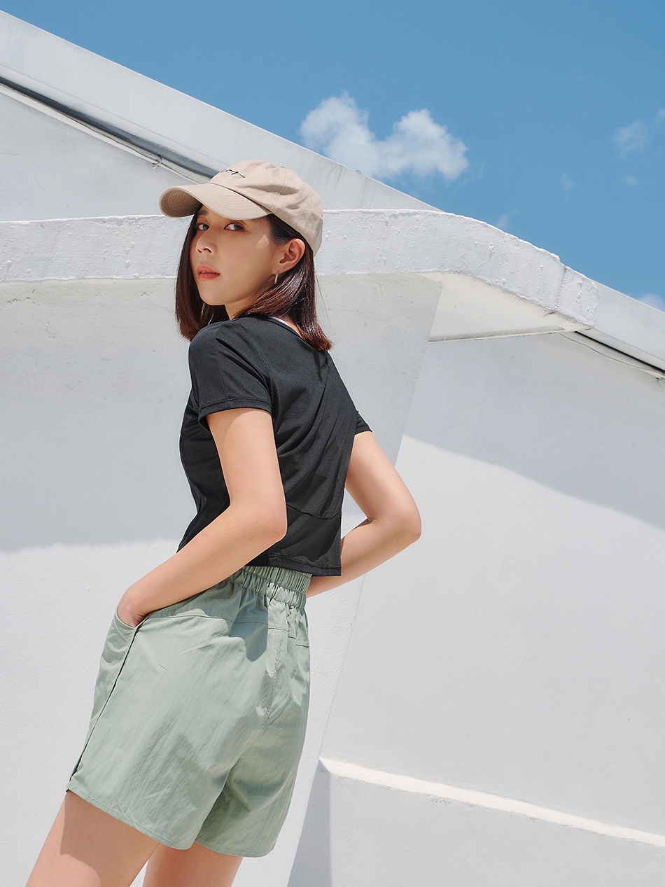 OB嚴選 涼感.冰牛奶絲剪接大U領短版運動上衣《KS1026》大尺碼/現貨/運動淺粉,M|淺粉,L|淺粉,S|黑,L|黑,XL|淺粉,XL|黑,S|黑,MT-shirtsOB嚴選官方旗艦店