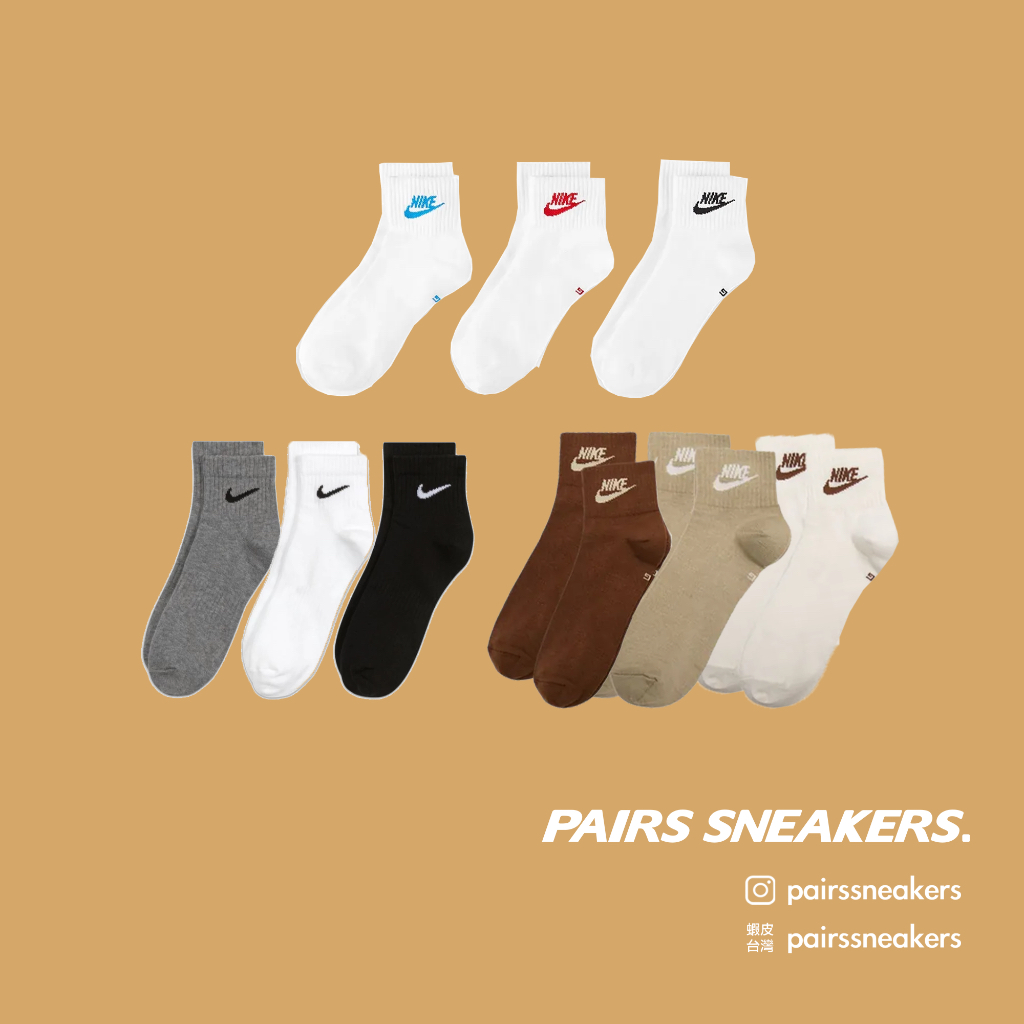 NIKE Everyday Essential 運動 短襪 三雙一組 DX5074-904 911 SX7677-964大地色 DX5074-904,M (24-27cm)|大地色 DX5074-904,L (27-30cm)|白底黑紅藍字 DX5074-911,M (24-27cm)|白底黑紅藍字 DX5074-911,L (27-30cm)|黑白灰小勾 SX7677-964,M (24-27cm)|黑白灰小勾 SX7677-964,L (27-30cm)PAIRS SNEAKERS | 派爾球鞋