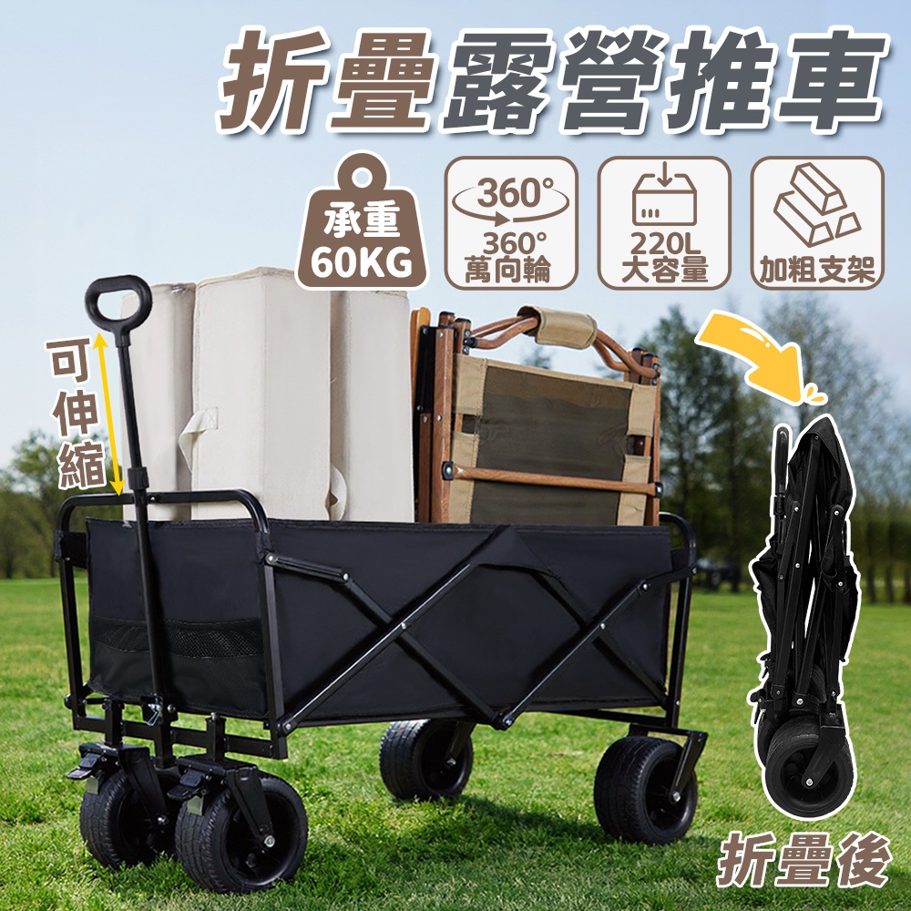 【柏詩互創】露營手推車 折疊推車 露營推車 好市多推車 露營車 露營拖車 露營拉車 野餐車 戶外推車升級版10吋越野輪-黑色(承重60kg)|升級版10吋越野-白色(承重60kg)Camping & HikingPETDOS派多斯