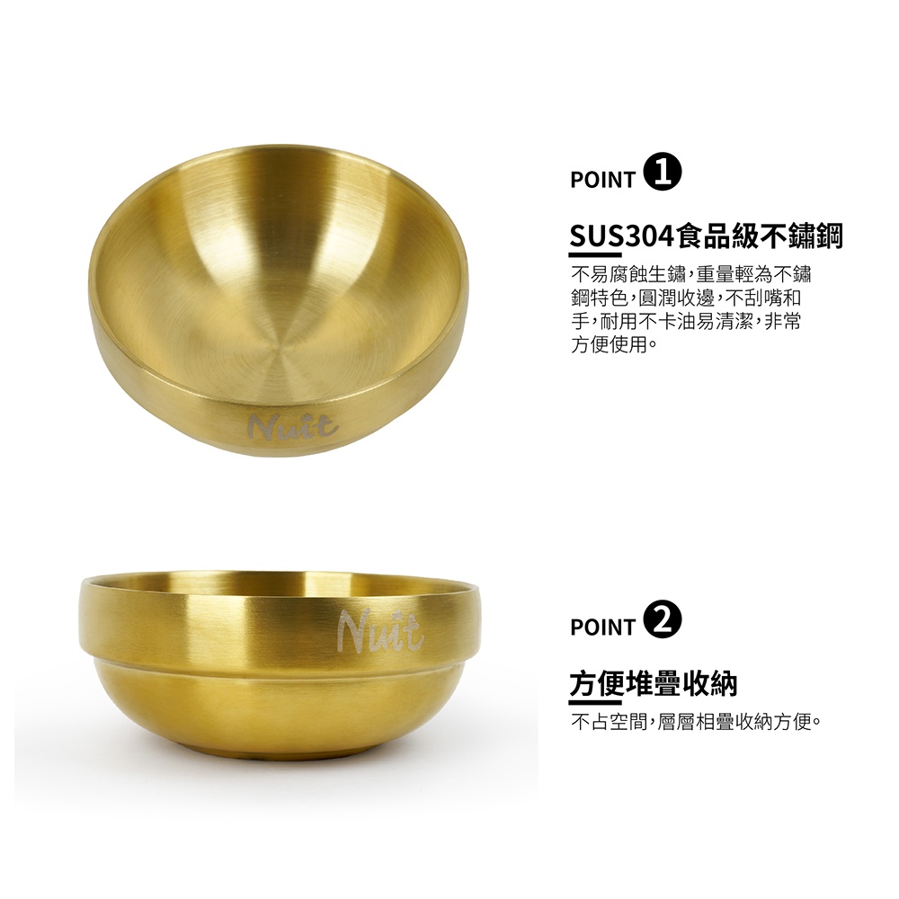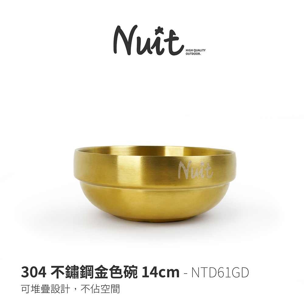 【努特NUIT】 NTD61GD 304不鏽鋼金色碗 14cm 金色餐具 不鏽鋼碗 不鏽鋼雙層碗 露營 金碗 防燙 雙層單入,超取/蝦皮配送易壓(凹)損,介意請選宅配Camping & HikingNuit努特戶外用品 官方旗艦店 (總代理:探險家戶外露營用品)