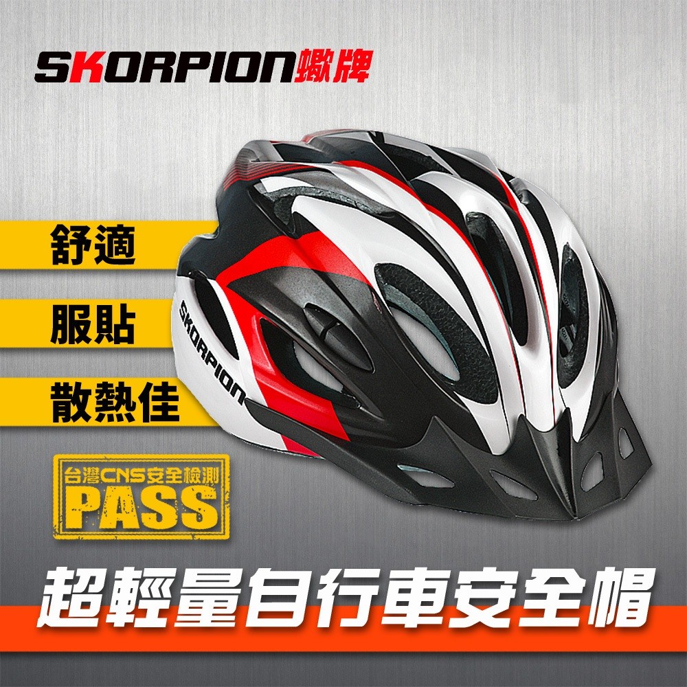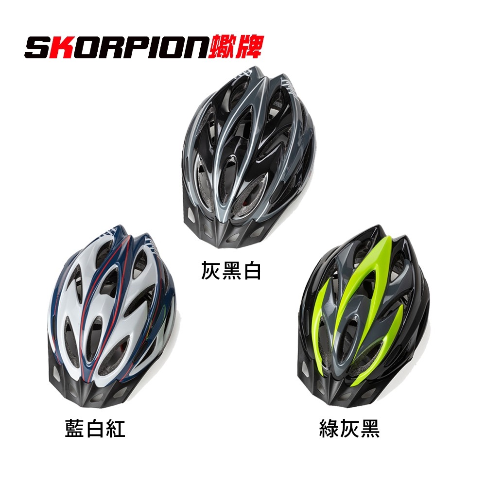 SKORPION蠍牌 CNS國家標準檢驗合格 自行車安全帽 安全帽 腳踏車安全帽 通風性佳 舒適服貼藍色【超取限2入】|紅色【超取限2入】|灰黑白【超取限2入】|藍白紅【超取限2入】|綠灰黑【超取限2入】CyclingSKORPION蠍牌 官方旗艦店