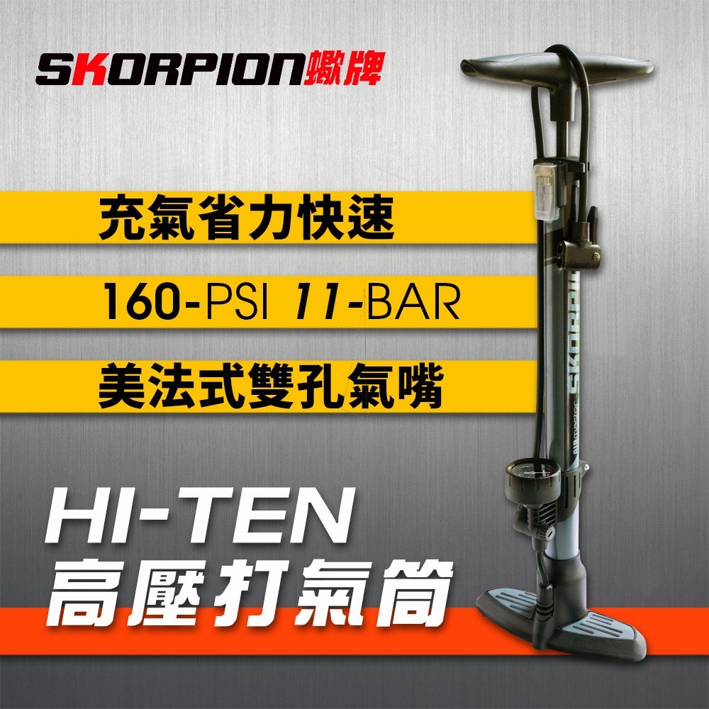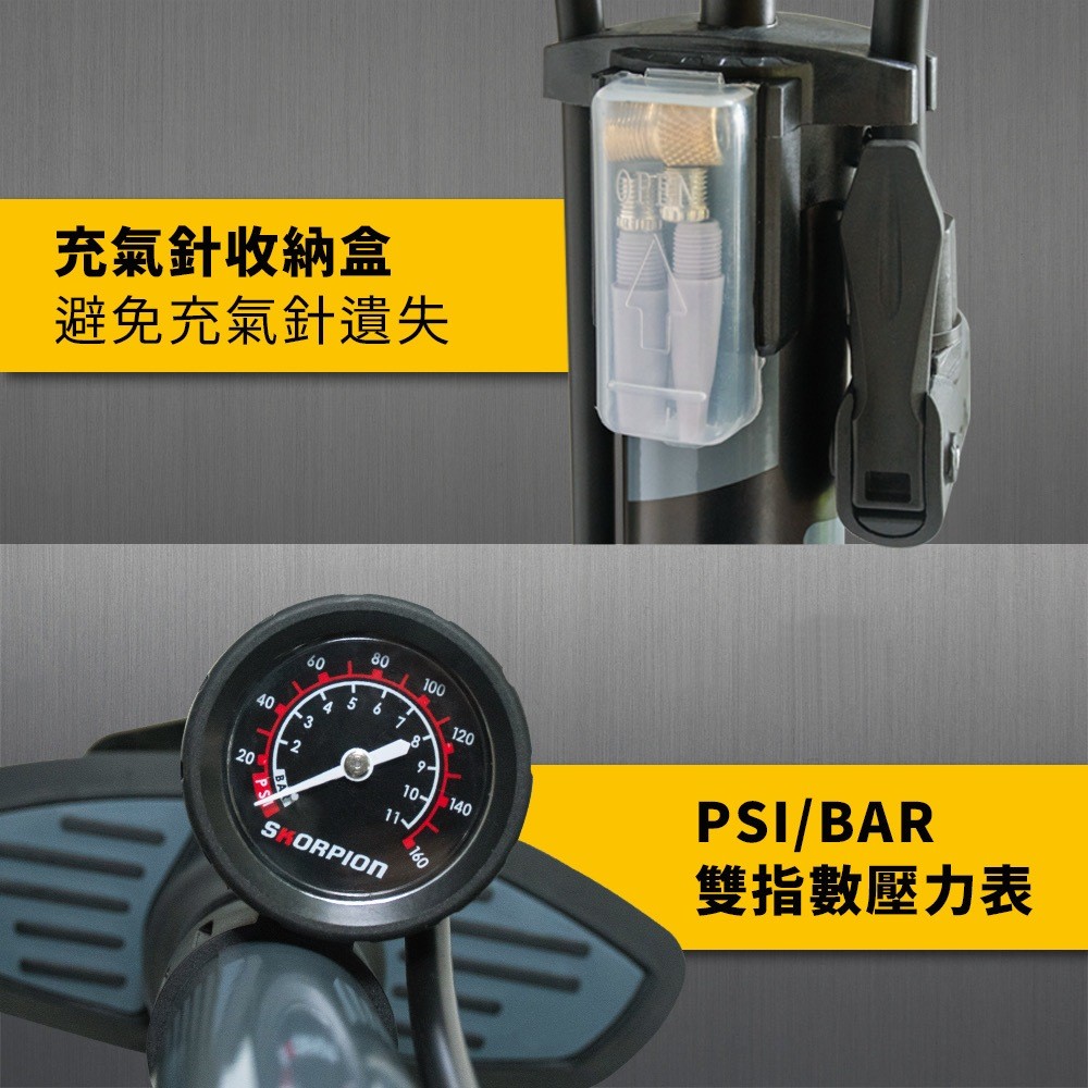 高壓打氣筒 自行車 單車 公路車打氣筒 附球針組 高碳鋼 美/法式氣嘴 附壓力錶 160-PSI打氣筒【附球針組】CyclingSKORPION蠍牌 官方旗艦店