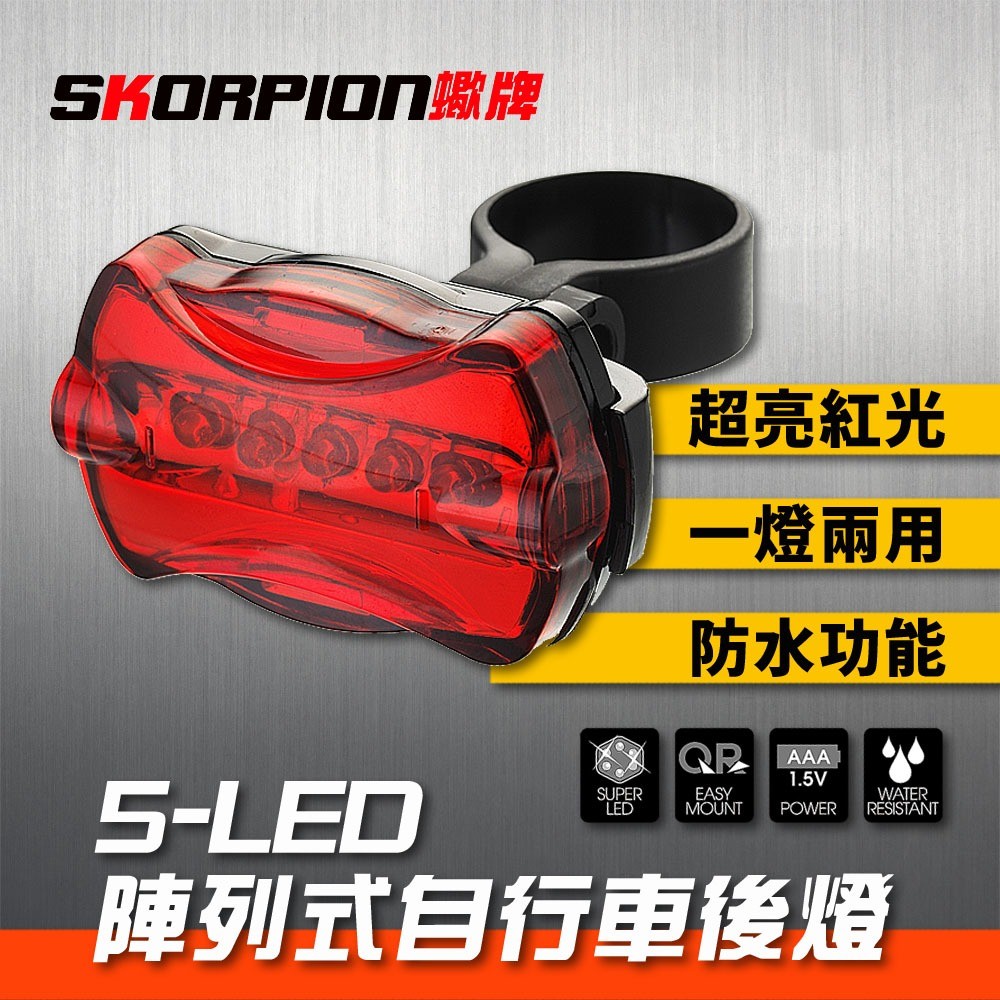 腳踏車尾燈 自行車 單車後燈 自行車尾燈 後燈 防水 5-LED 高亮度 AAA電池 五段模式腳踏車尾燈 自行車 單車後燈 自行車尾燈 後燈 防水 5-LED 高亮度 AAA電池 五段模式CyclingSKORPION蠍牌 官方旗艦店