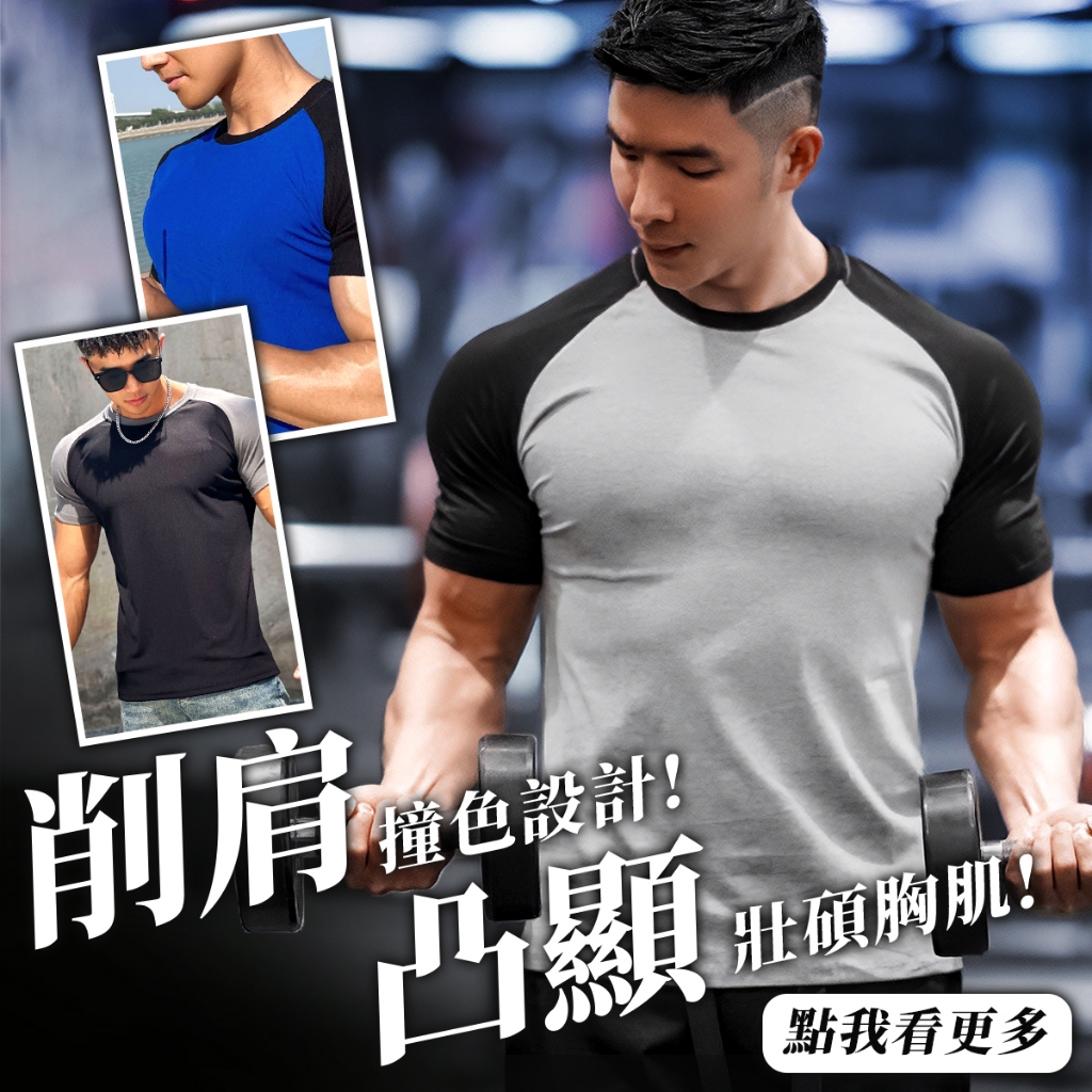 【MS】拼色顯肌短袖【台灣出貨】男上衣t恤健身運動彈力速乾吸濕排汗緊身寬肩籃球夏天純棉顯瘦排汗衫重訓舒適顯壯肌肉戶外排球灰色,2XL|藍色,XL|黑色,XL|黑色,2XL|灰色,M|灰色,XL|黑色,M|黑色,L|灰色,L|藍色,M|藍色,L|藍色,2XLT-shirtsMuscle Shot 男裝專賣店