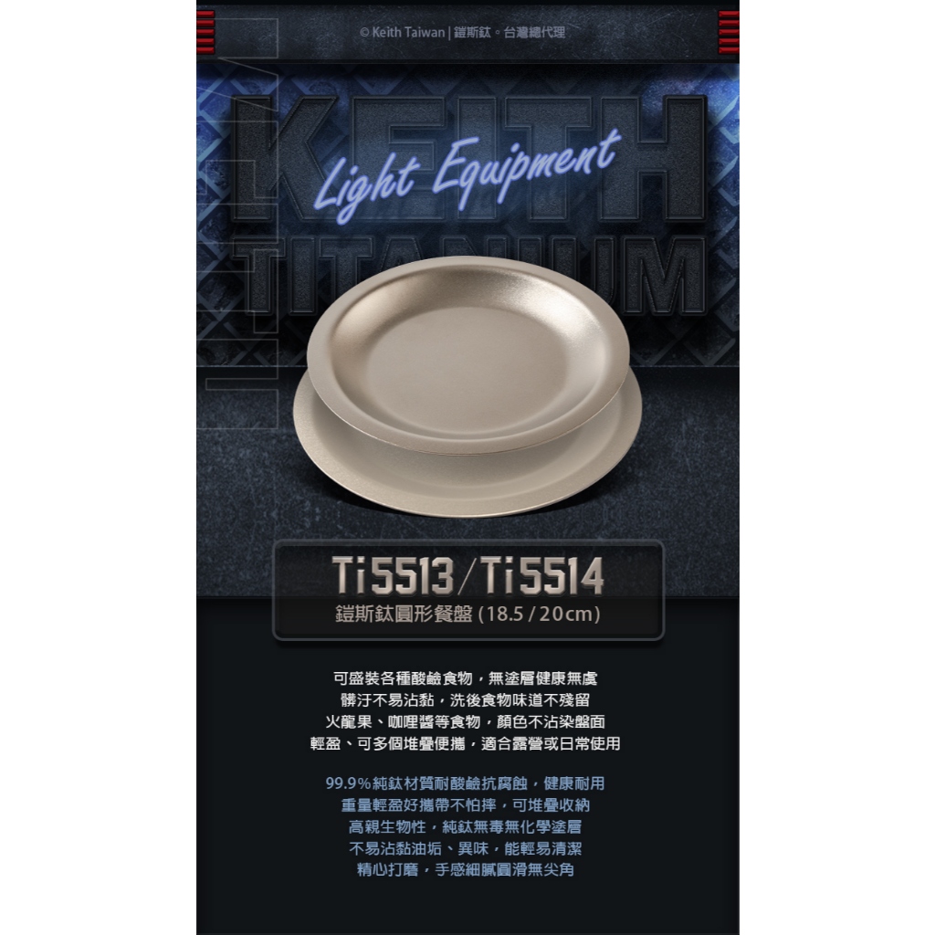 Keith 鎧斯鈦圓形餐盤 (20cm/18.5cm) 鈦餐盤點心盤 戶外露營 深盤純鈦圓盤 Ti5513 Ti551418.5cm深盤 / Ti5513|20cm淺盤 / Ti5514Camping & HikingSolar Life 索樂生活 | Keith鎧斯鈦台灣總代理