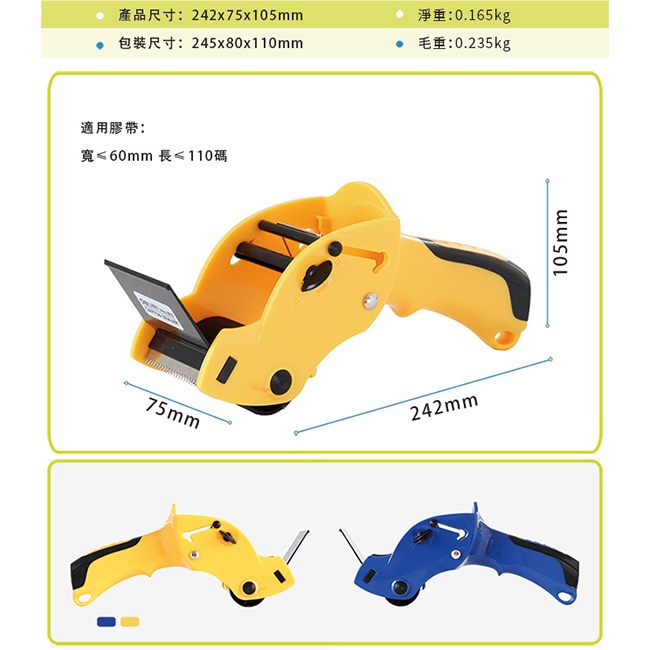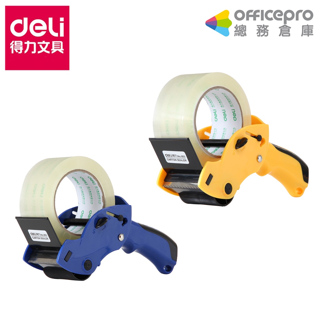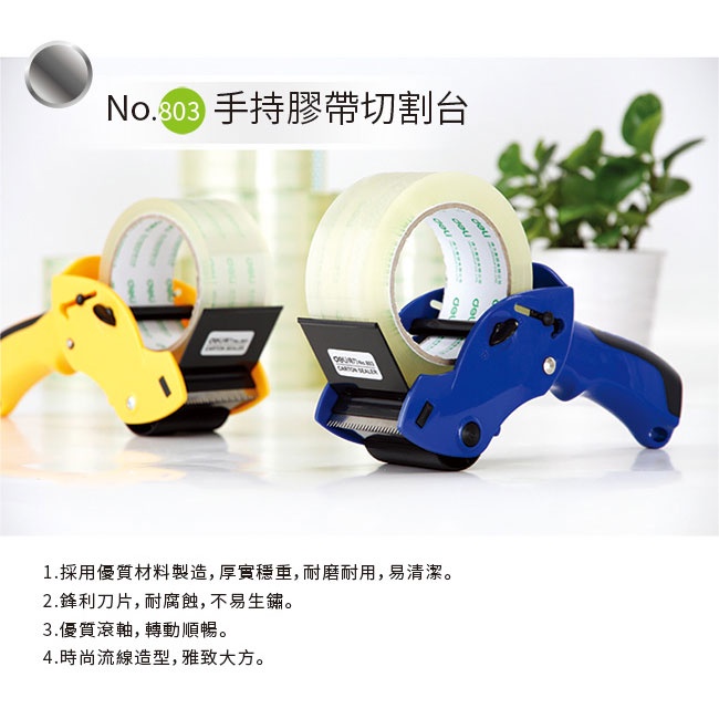 得力Deli 手持膠帶切割台-藍色/黃色(803) 切割器 裁切器 手持裁切器 辦公膠帶 膠台藍色|黃色Pen Knives & Paper CuttersOfficepro總務倉庫 旗艦店